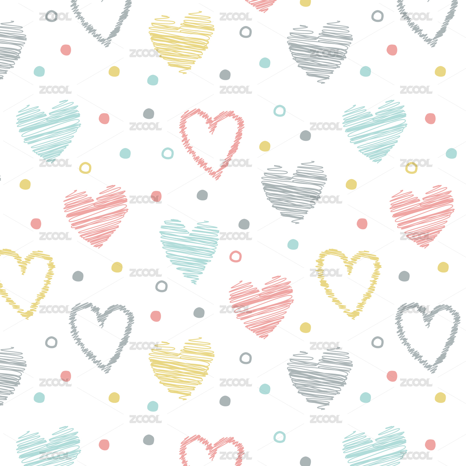 可爱手绘涂鸦爱心无缝拼接图案