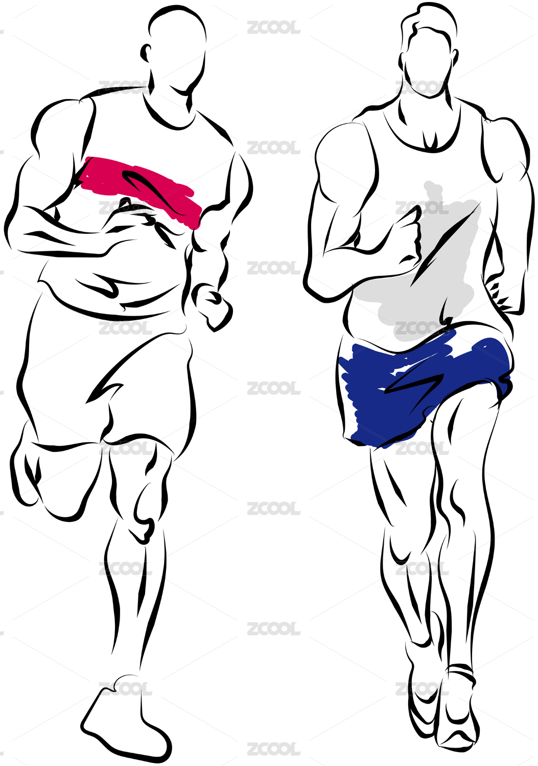 原创运动跑步简约风线条手绘涂鸦插画矢量图