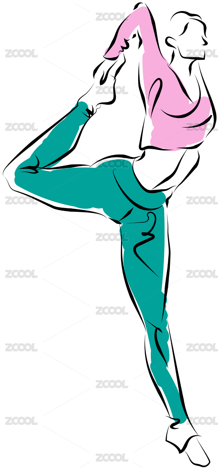 瑜伽运动简约线条手绘涂鸦插画矢量图