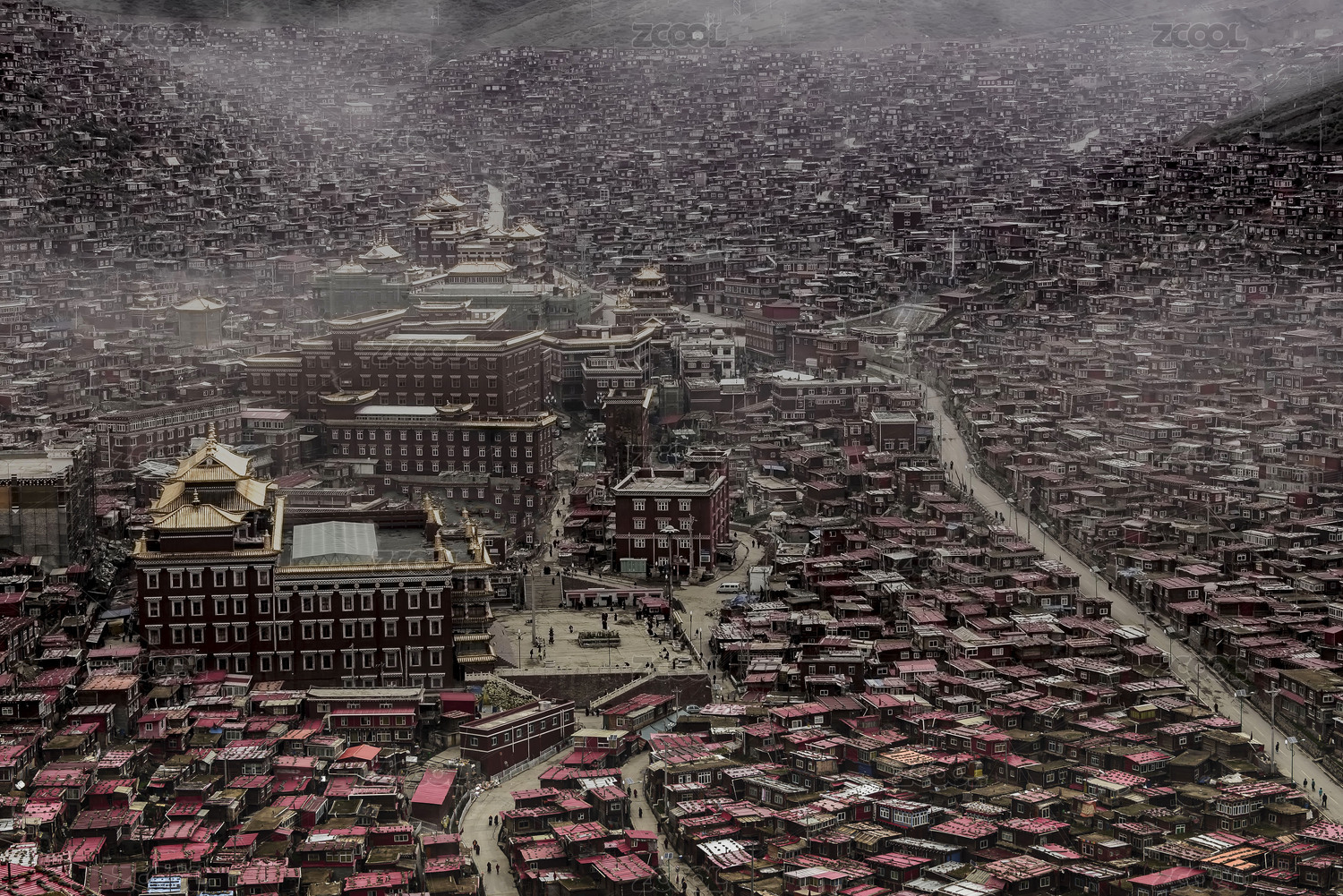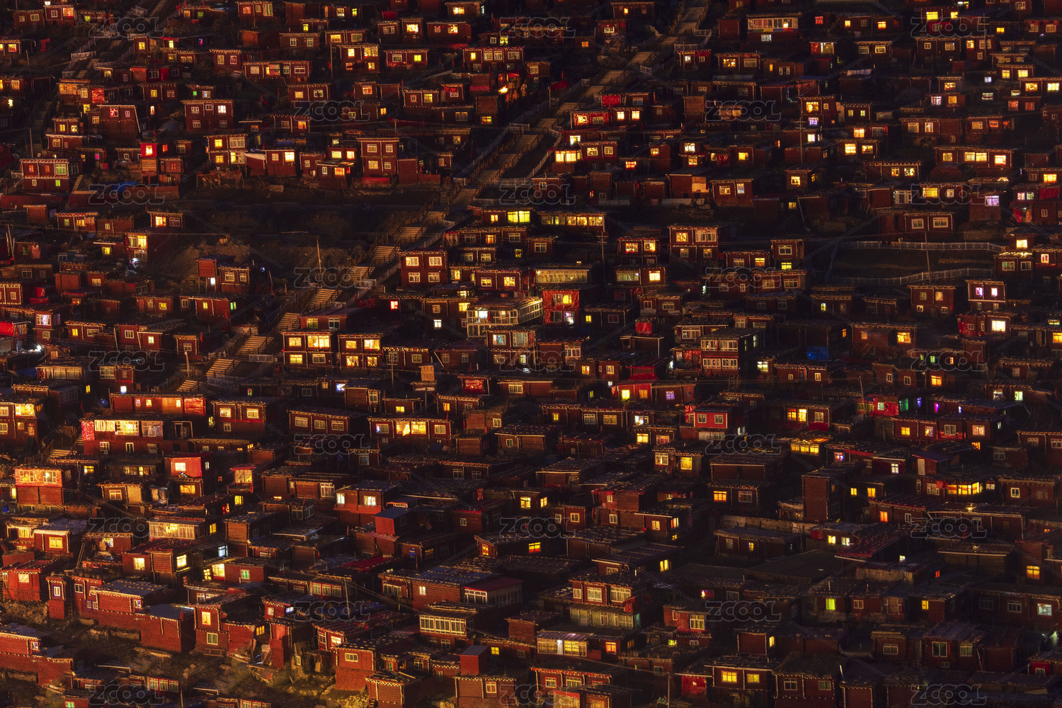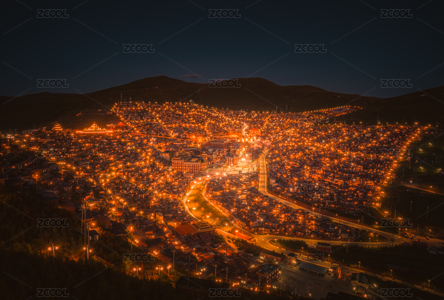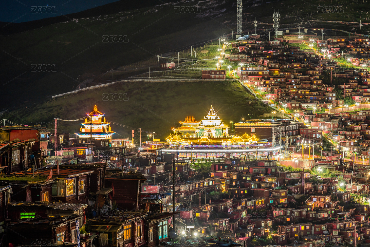 四川省甘孜藏族自治州色达县五明佛学院夜景
