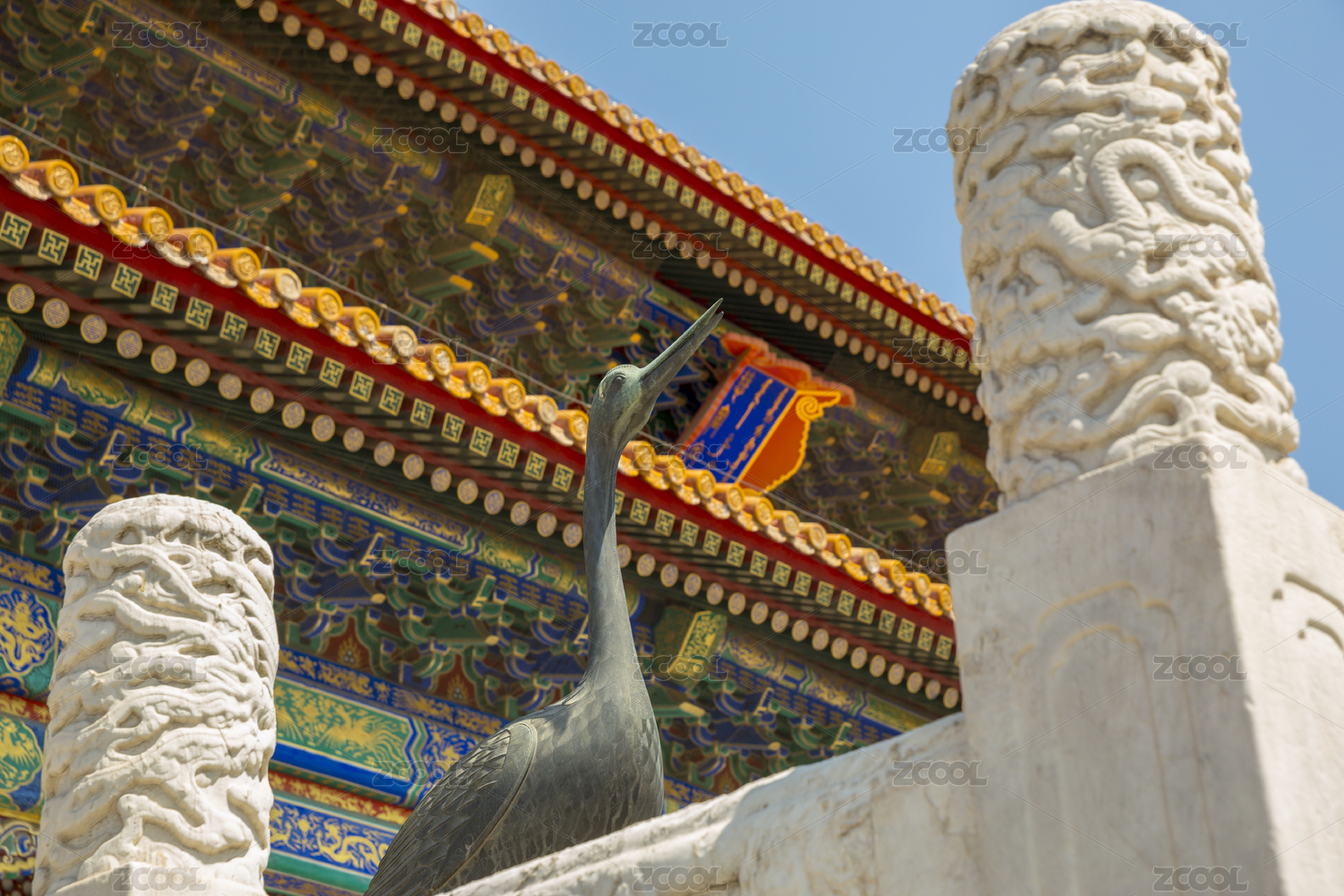 北京故宫内的仙鹤铜像仰视图
