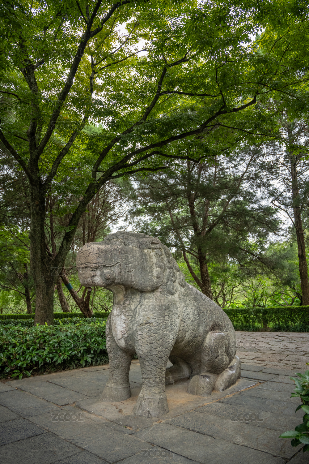 南京钟山明孝陵景区石像路夏季獬豸狮子麒麟