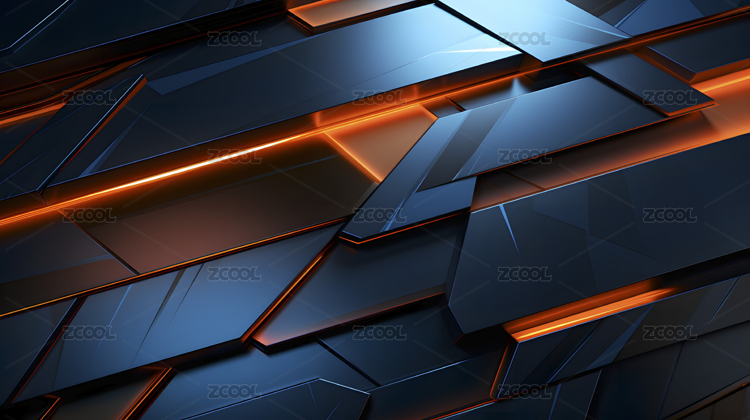 数码科技蓝橘色未来派墙抽象海报网页背景