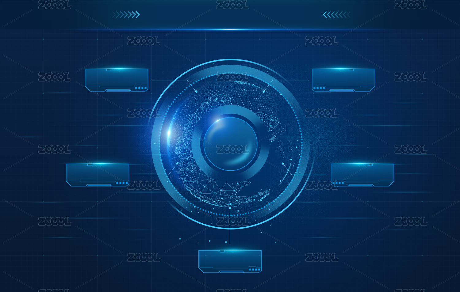 科技蓝透光智能概念未来物联网络图标合集