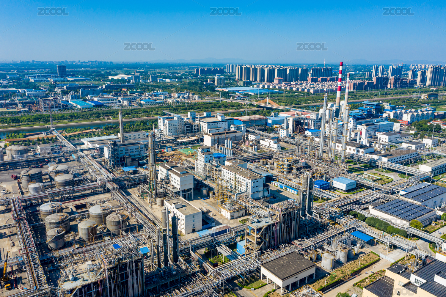 现代化石油化工厂晴天航拍