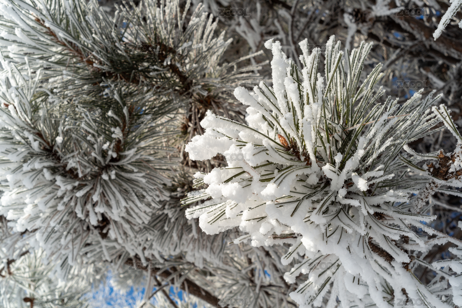 冬天结满雾凇的松针