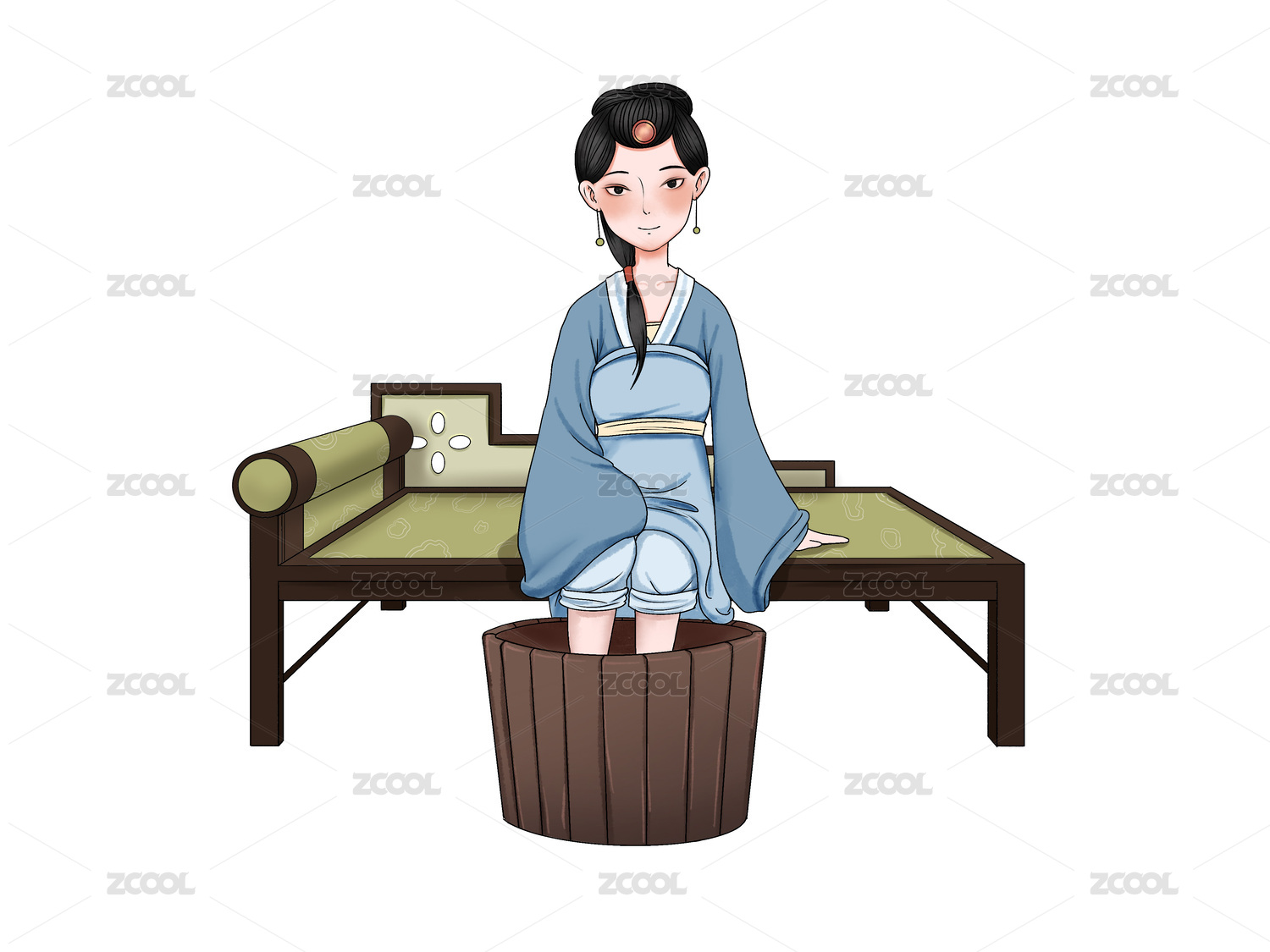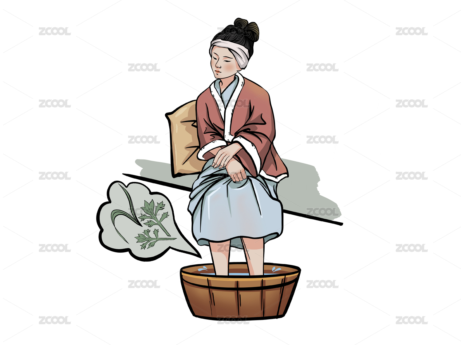 国潮养生泡脚的旗袍复古女古装气泡美女家