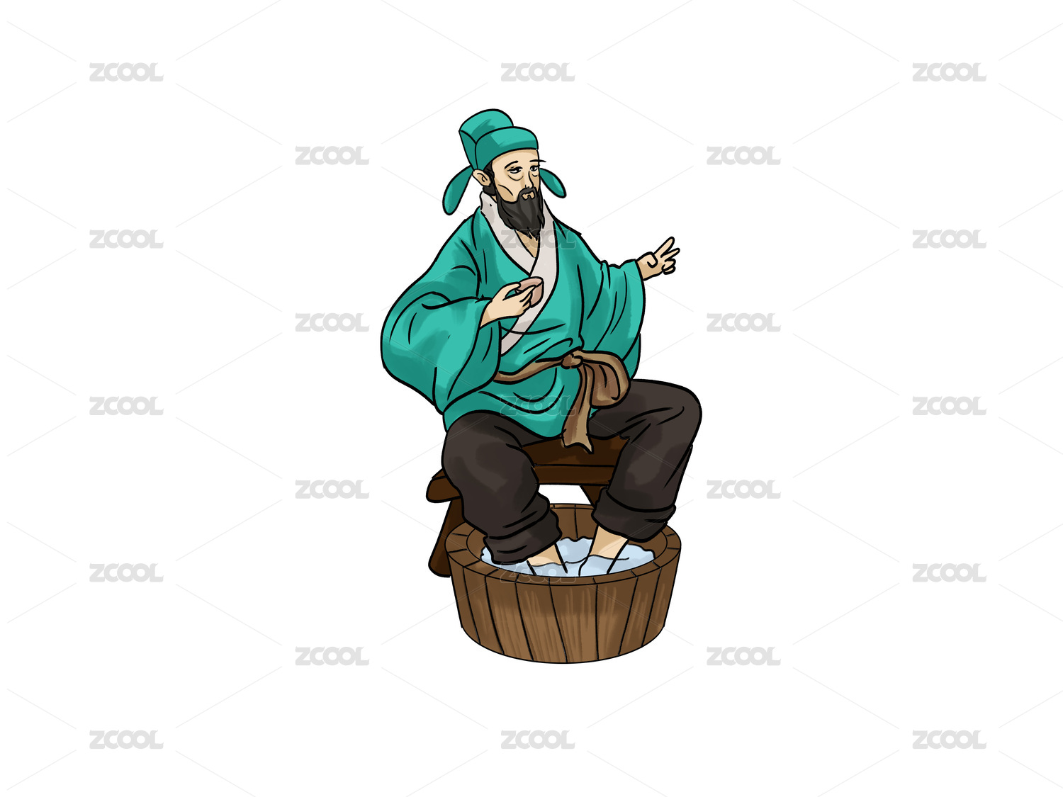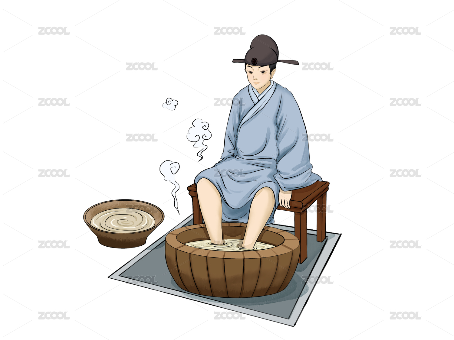 蓝色水墨养生泡脚古风人男人坐在椅子上