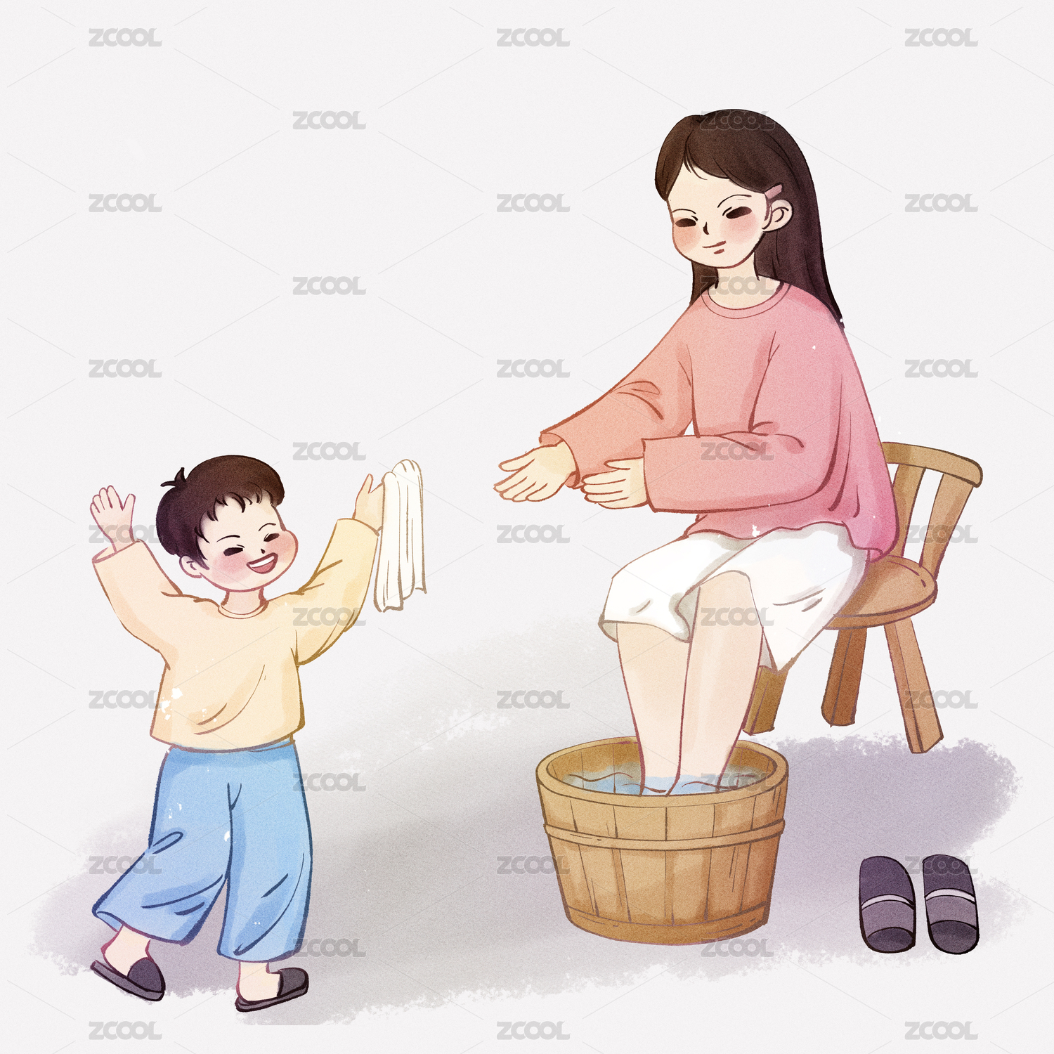 男孩坐在椅子上戌时泡脚桌上放着漱口茶香薰