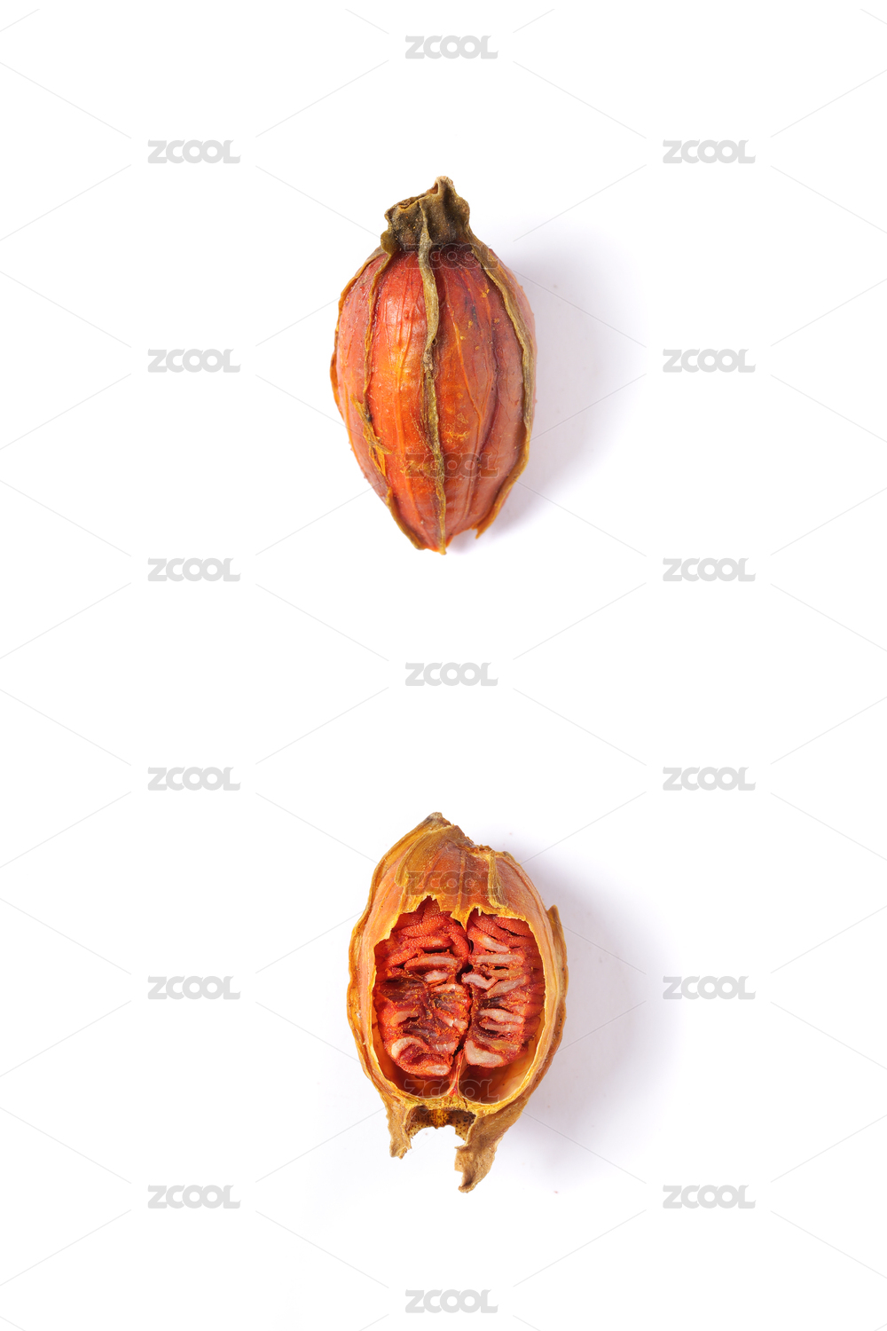 一个放在白色背景上的新鲜栀子果实