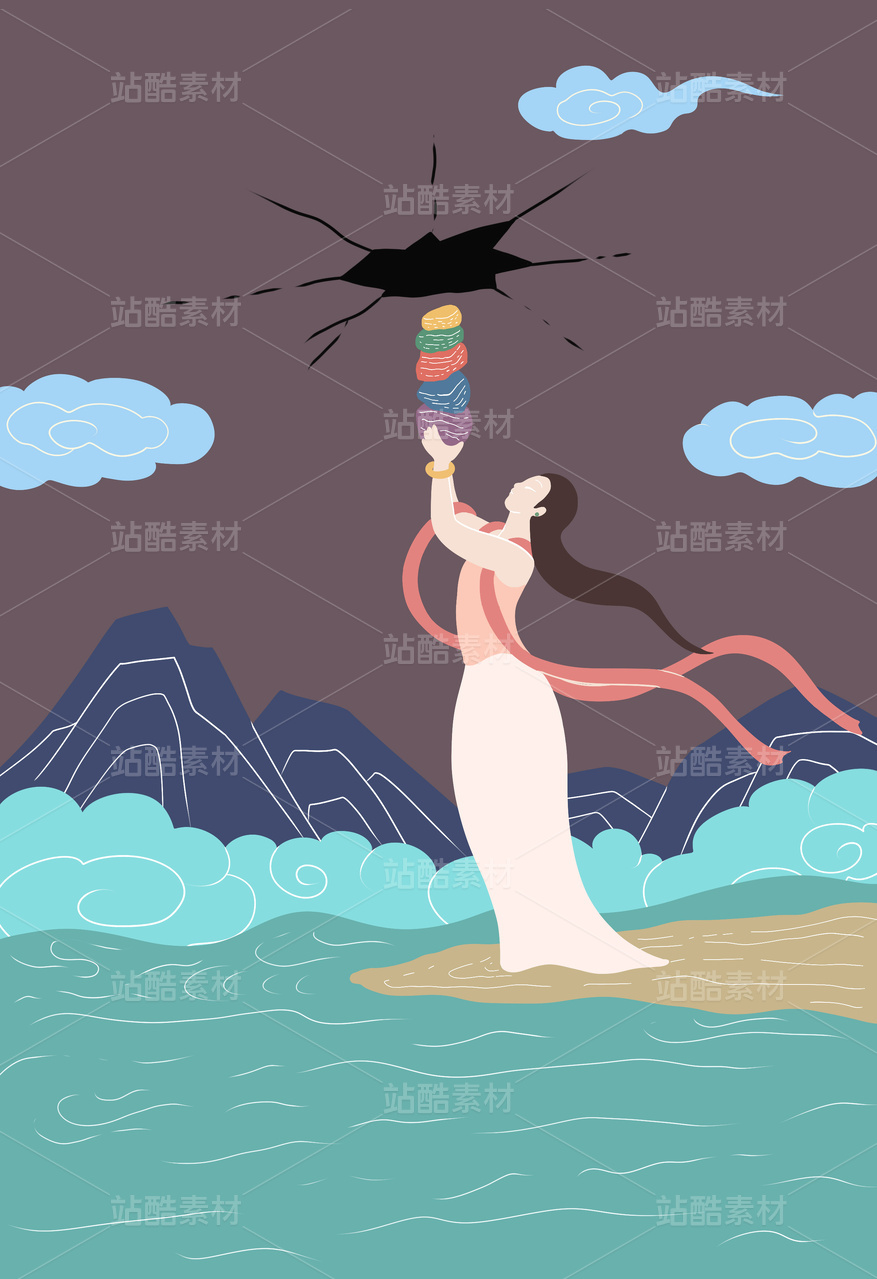 牌坊夹柱石浮雕大禹治水女娲补天后羿射日
