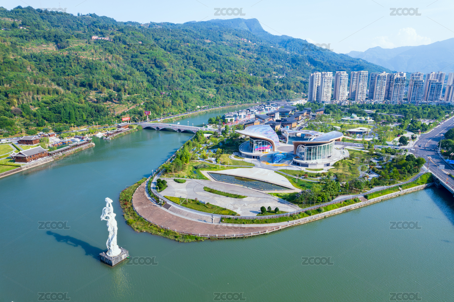 四川雅安女娲补天雕塑和女娲广场白昼航拍