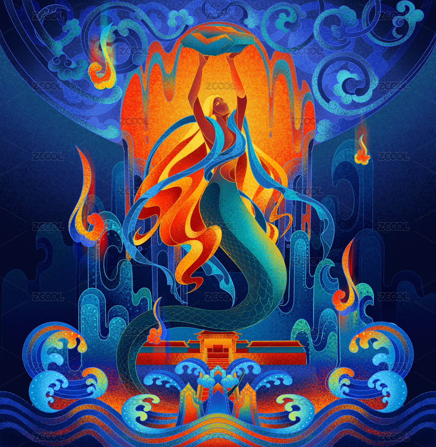 女娲补天浮雕墙 ,山东青州东夷文化广场