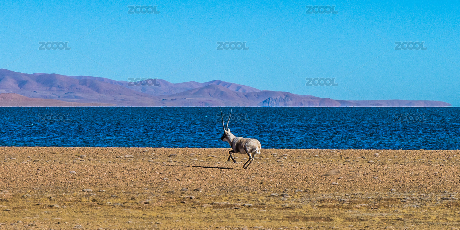 中国西藏阿里改则县雪地上的一群公藏羚羊