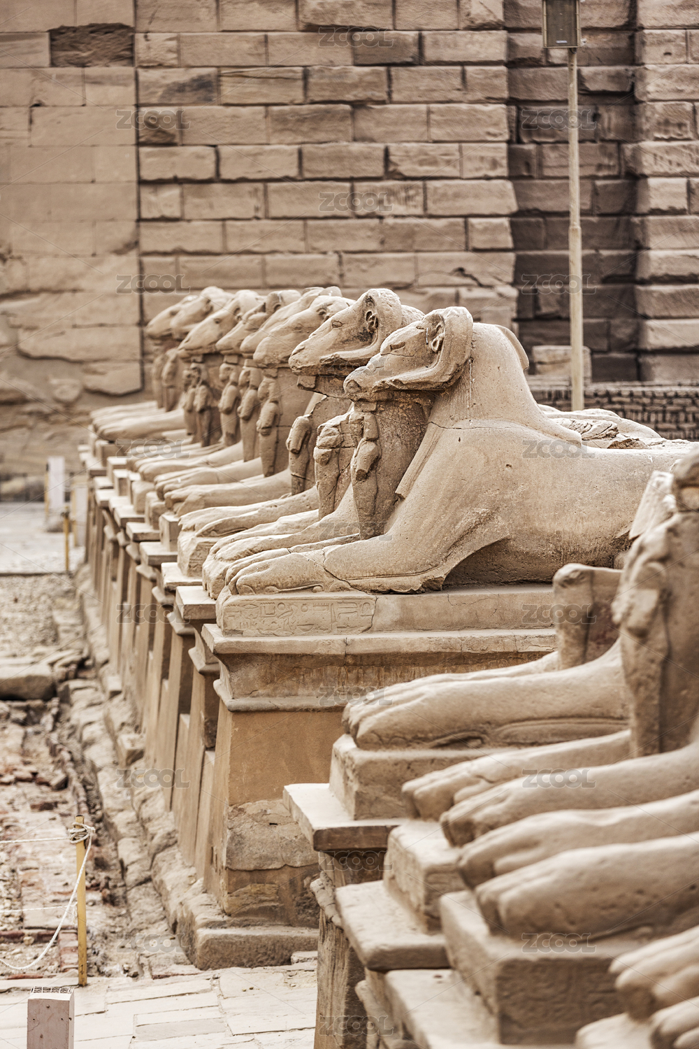 埃及卢克索地区卡尔纳克神庙的公羊狮身石雕