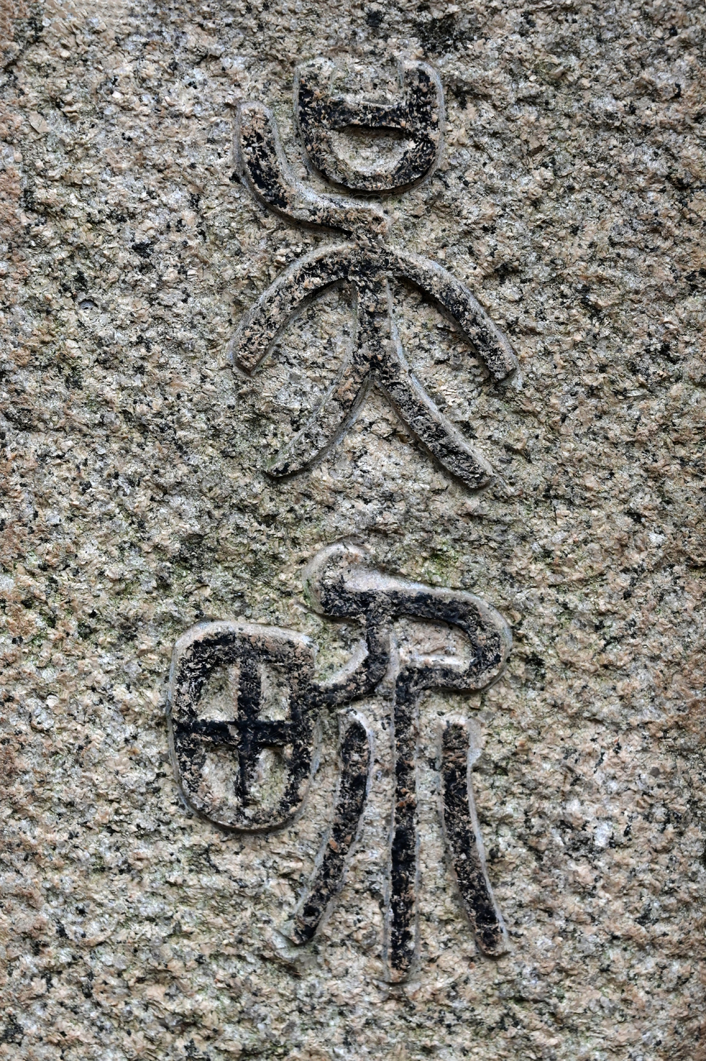 上海枫泾古镇吴越古国碑石上的篆书刻字