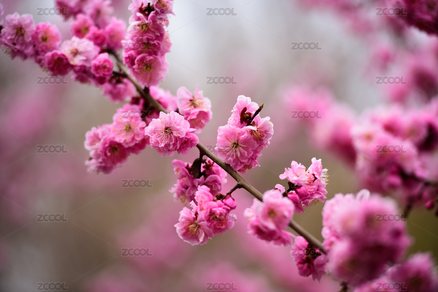 春天 ,公园里盛开的迎春花 樱花 桃花等