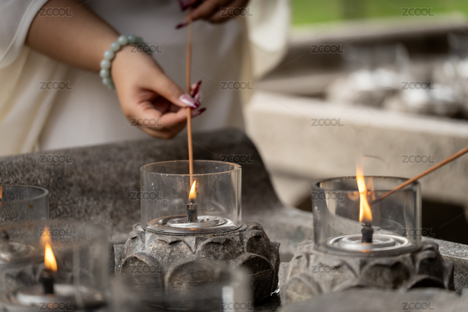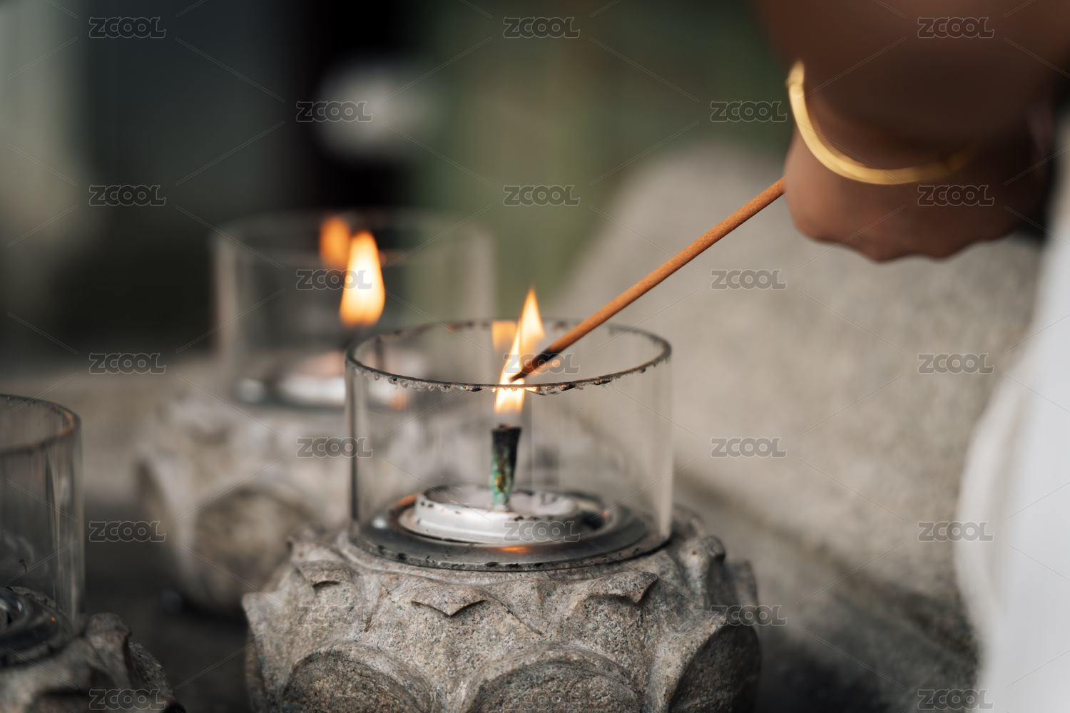 点燃石座香烛的仪式场景