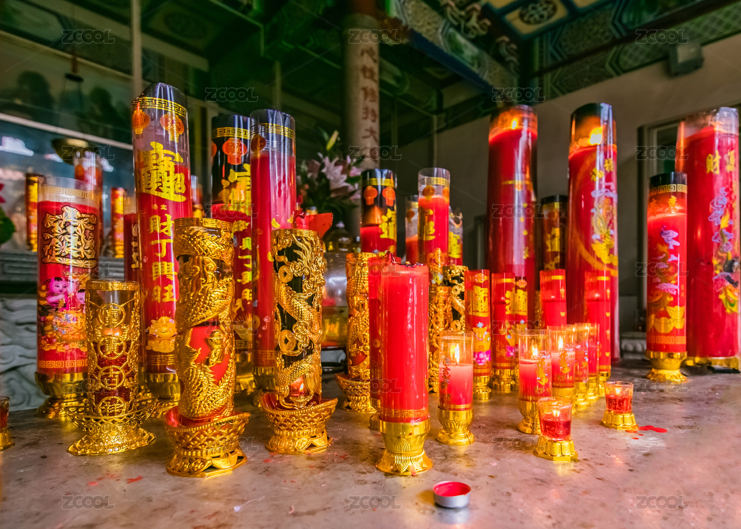中国禅院祭祀日用品红色香烛环境装饰品