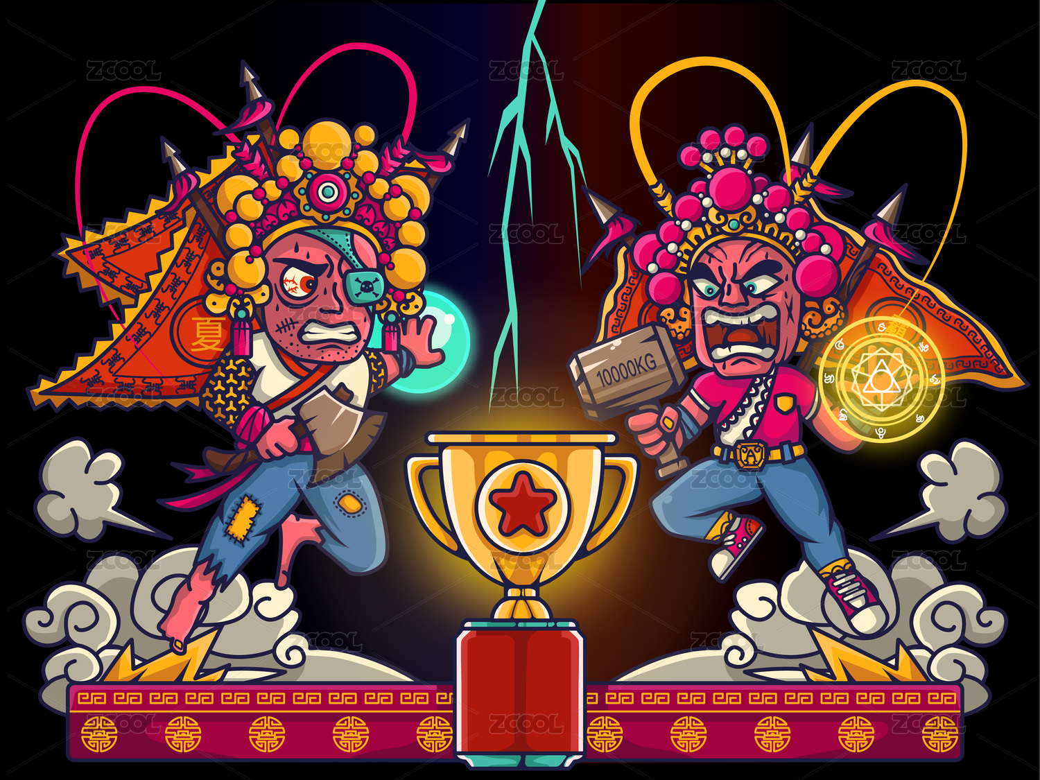 两个穿戏剧服装的的人正在吵架争斗矢量插画