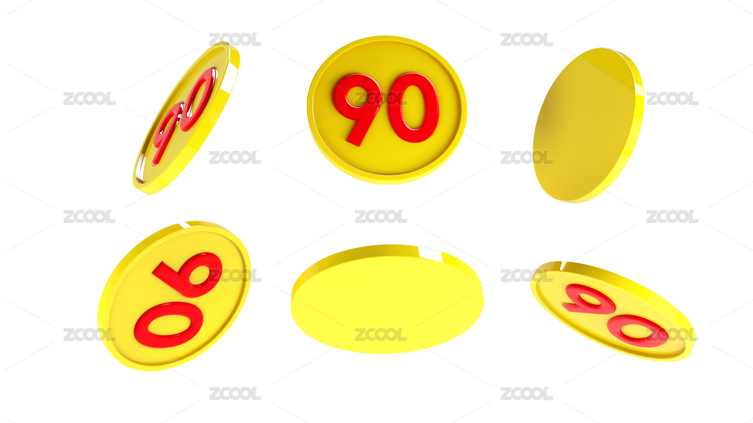 3D渲染的折扣券优惠券金币促销电商购物元