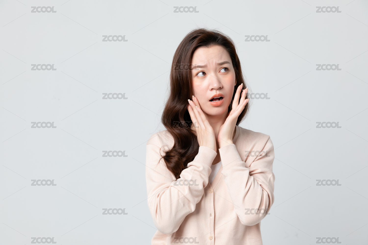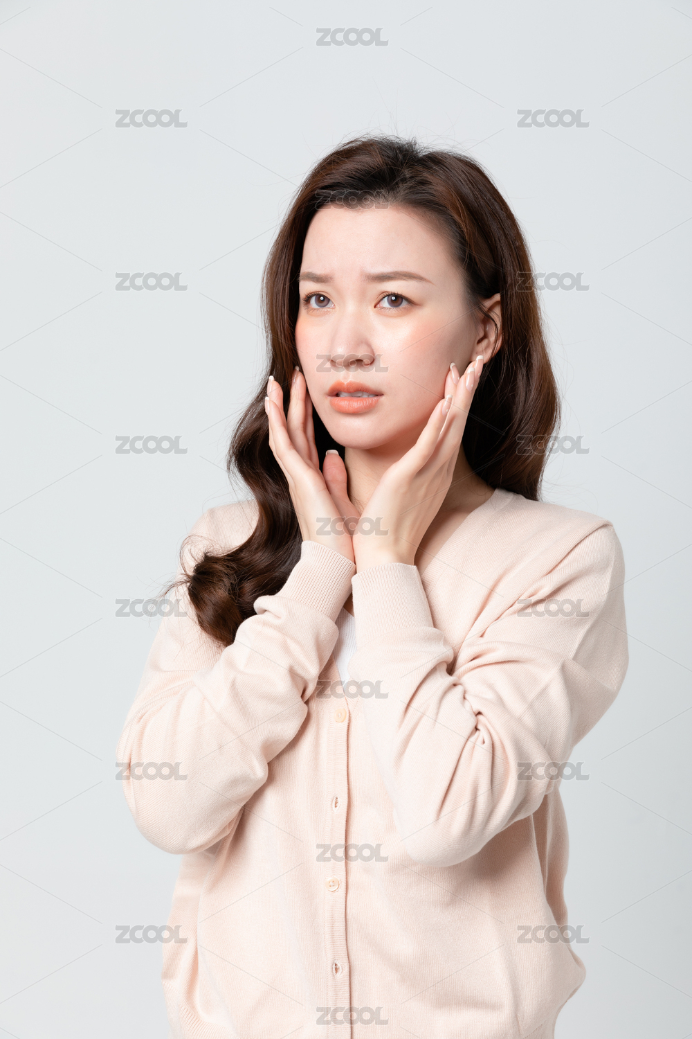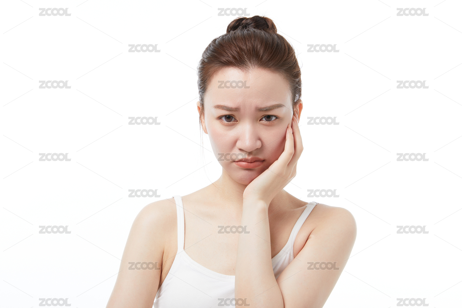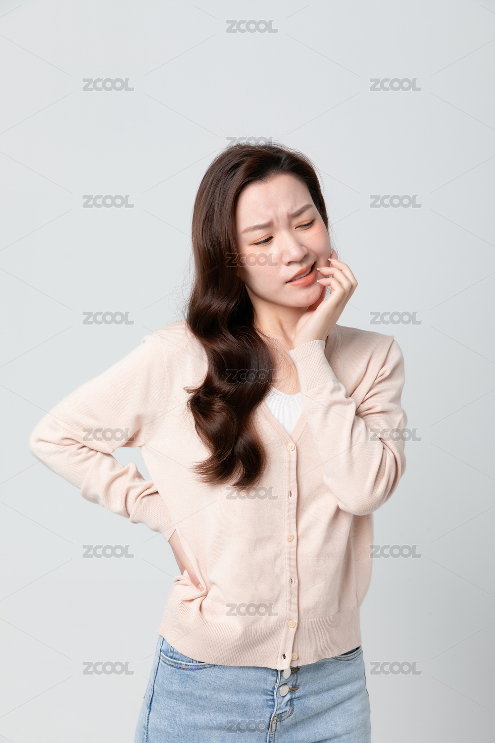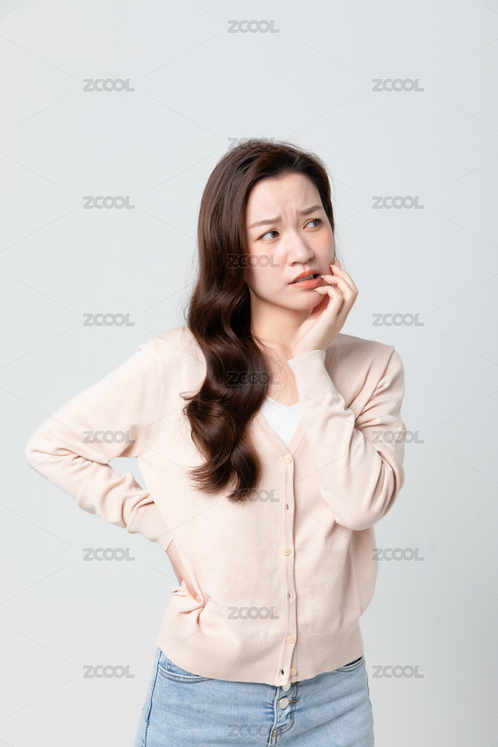 长发女生牙疼皱眉