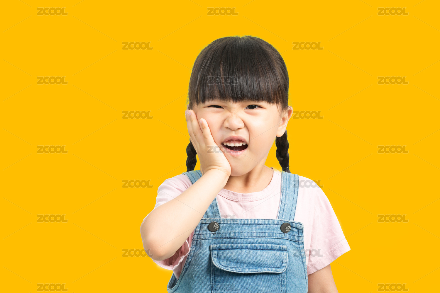 牙疼的小女孩手捂着脸表情痛苦