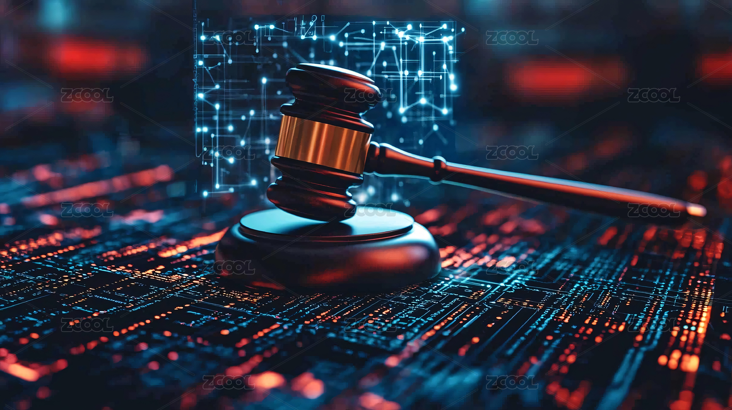 数字木槌象征着数据背景上的网络法律