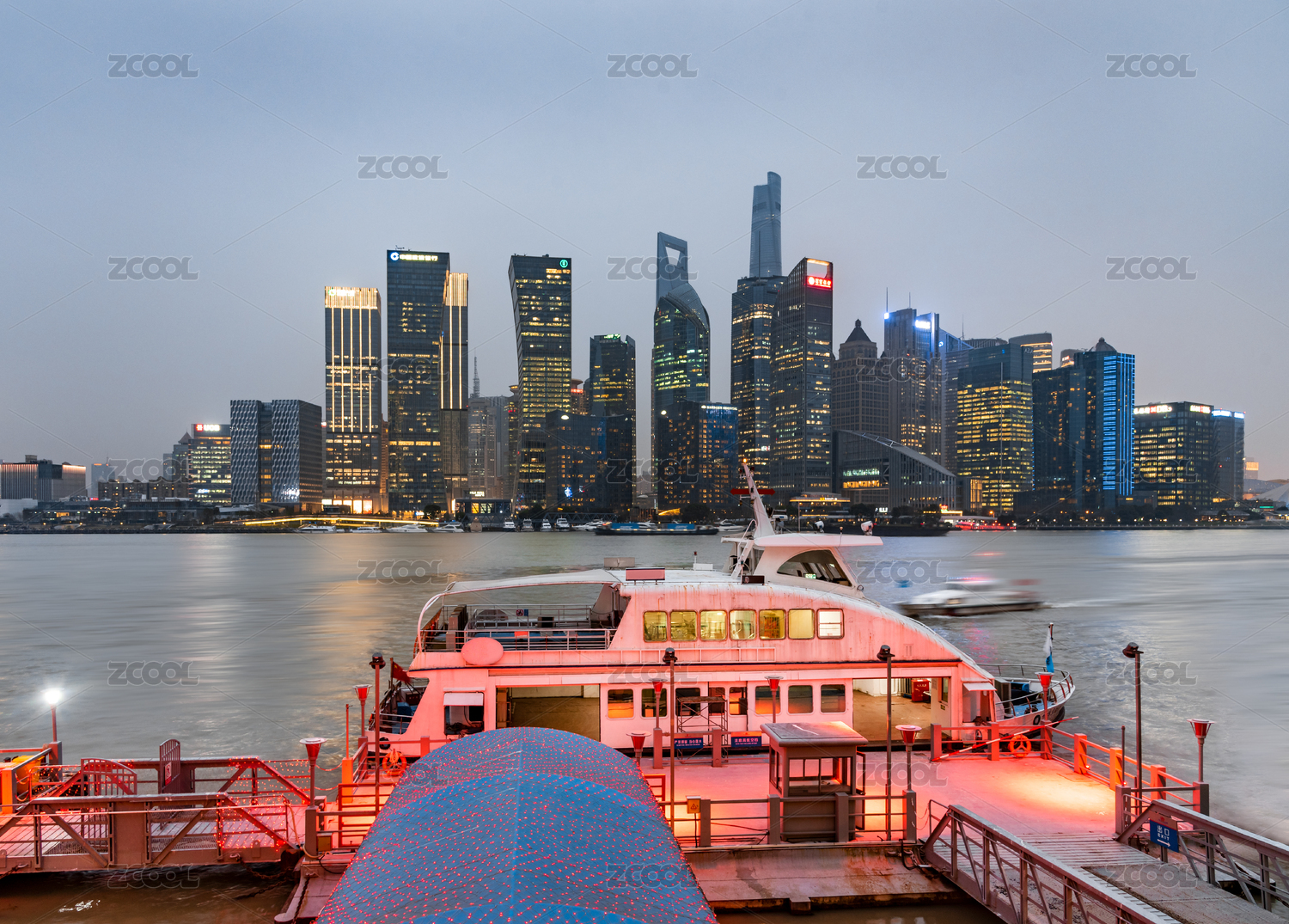 上海北外滩公平路渡轮站的夜景