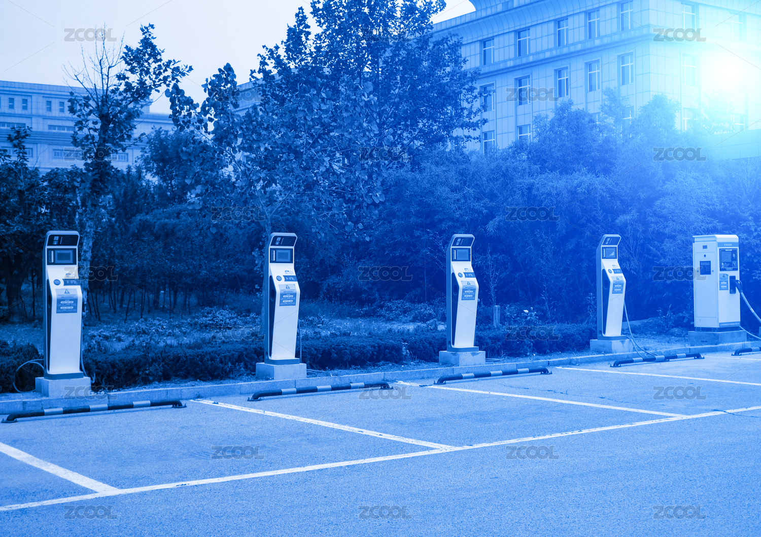 车站一排电动汽车充电桩