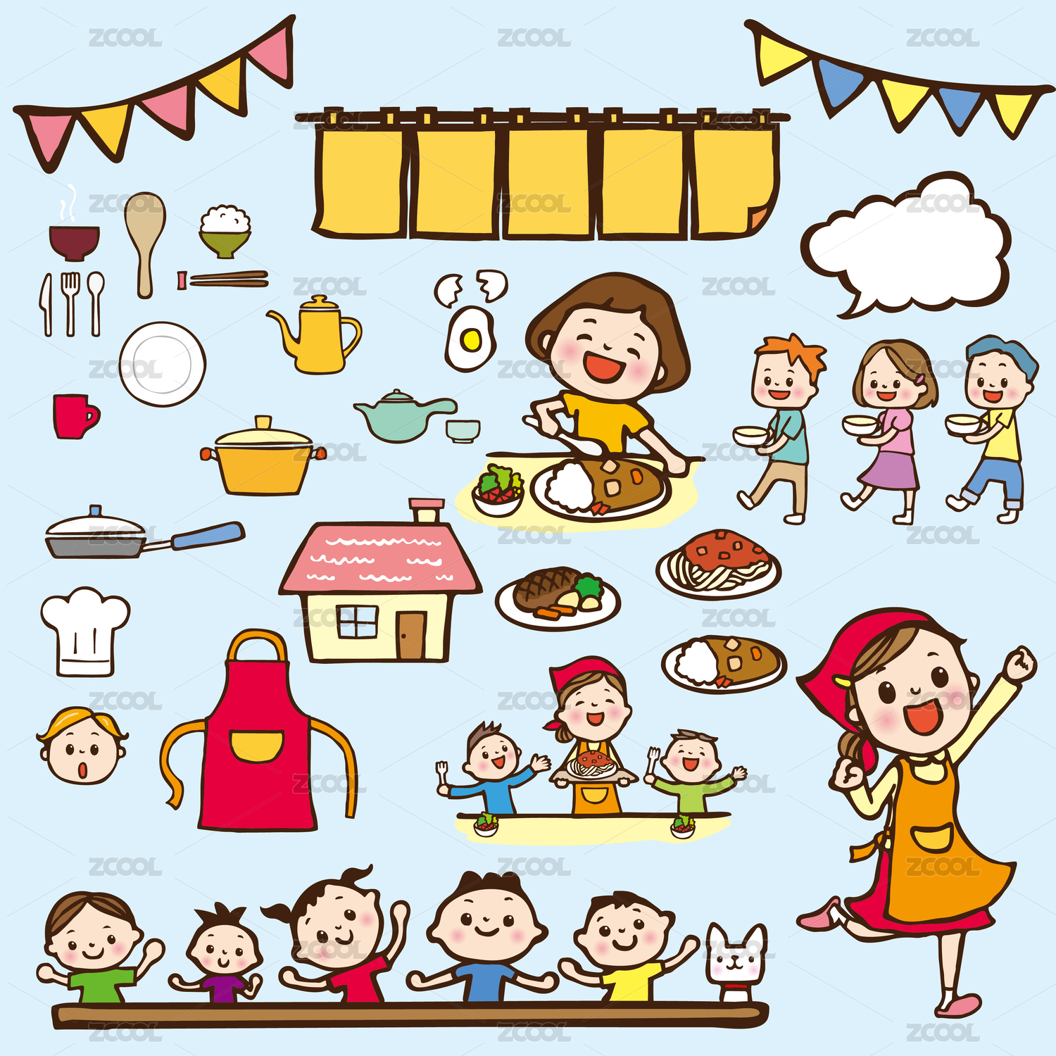 卡通可爱手绘风格的幼儿园食品吃饭元素