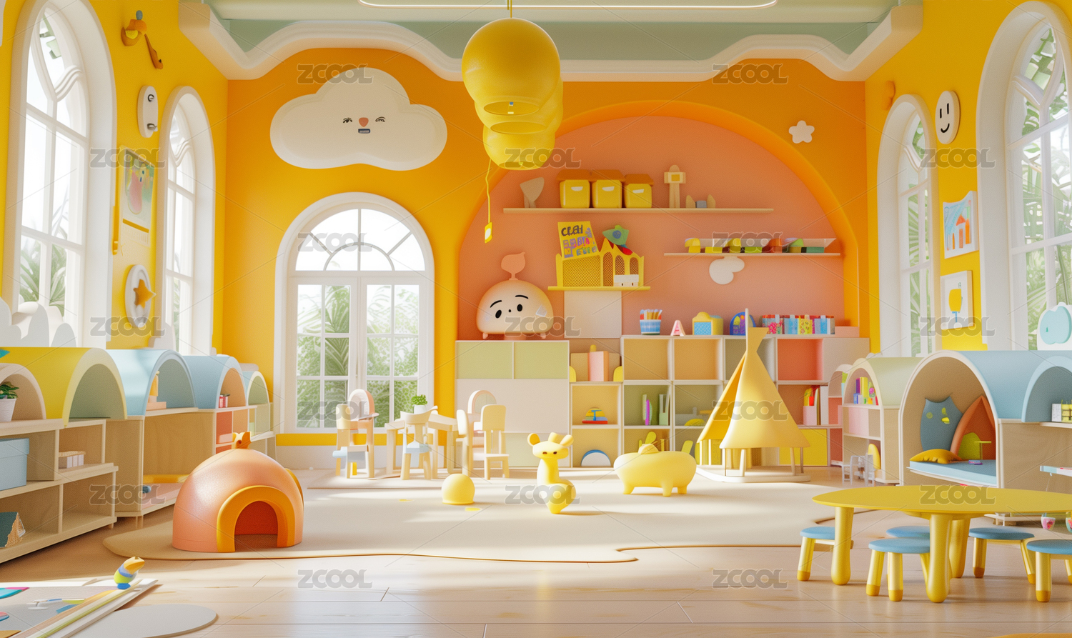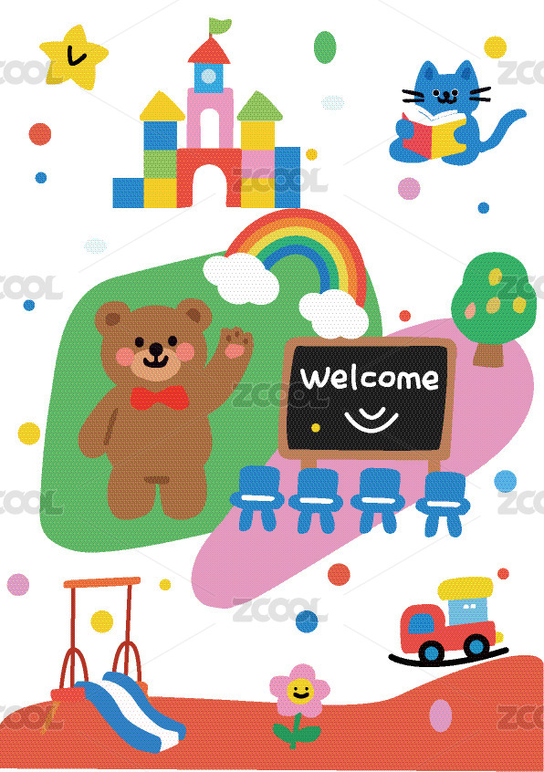矢量扁平动物小熊幼儿园开课上课场景插画