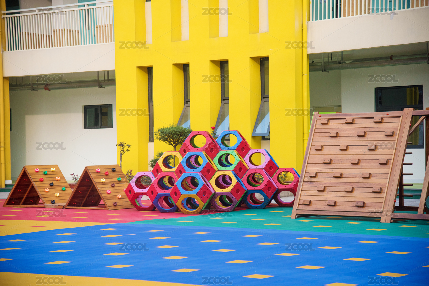 独自蹲在幼儿园室内玩玩具的两岁男孩