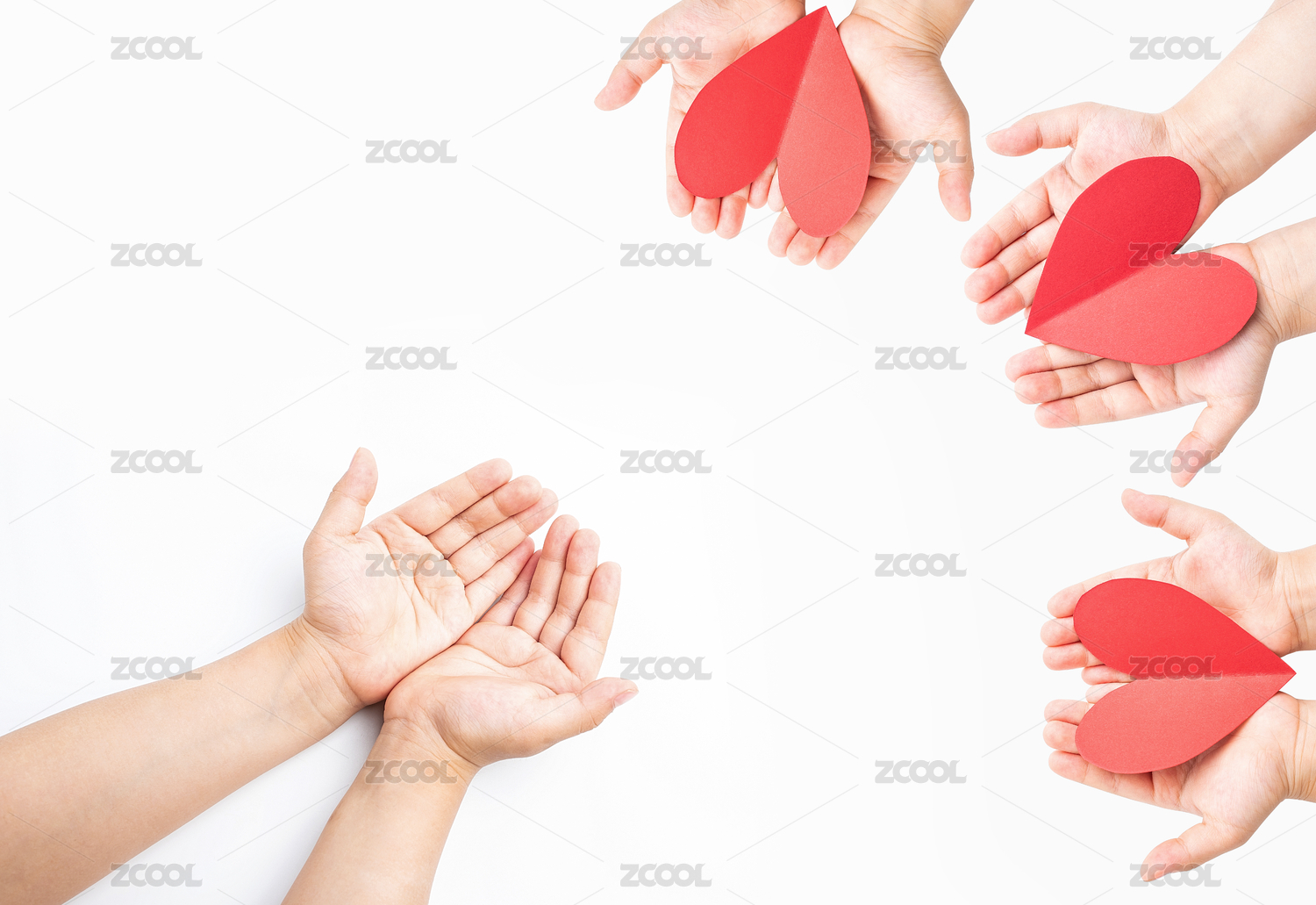 蓝天白云下儿童双手捧着红心/奉献爱心公益概念海报