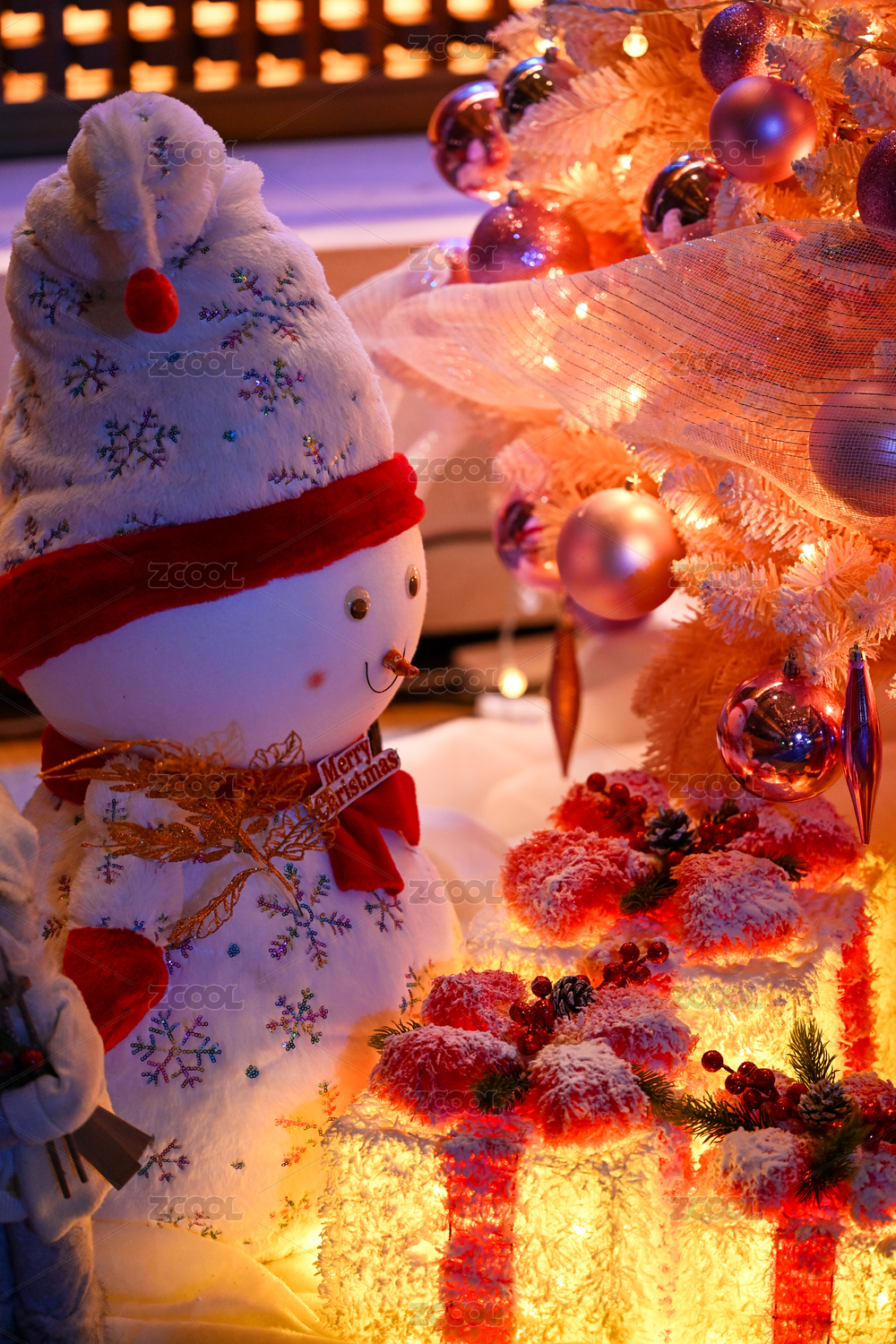 圣诞雪人礼物温馨场景