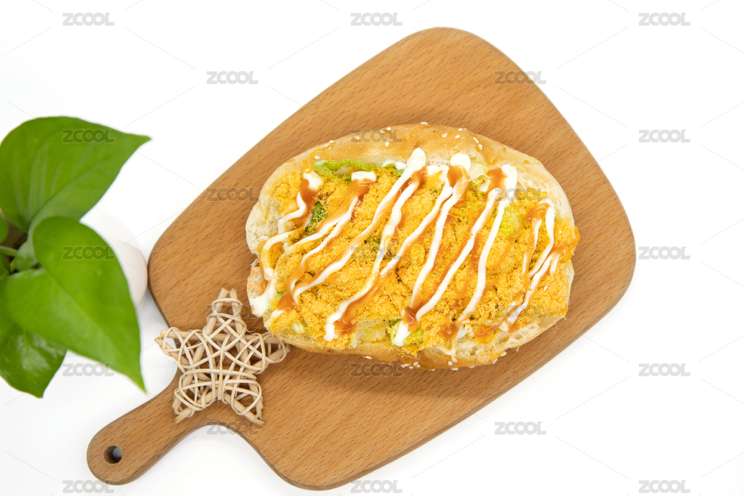 白背景烘焙美食肉松芝士面包