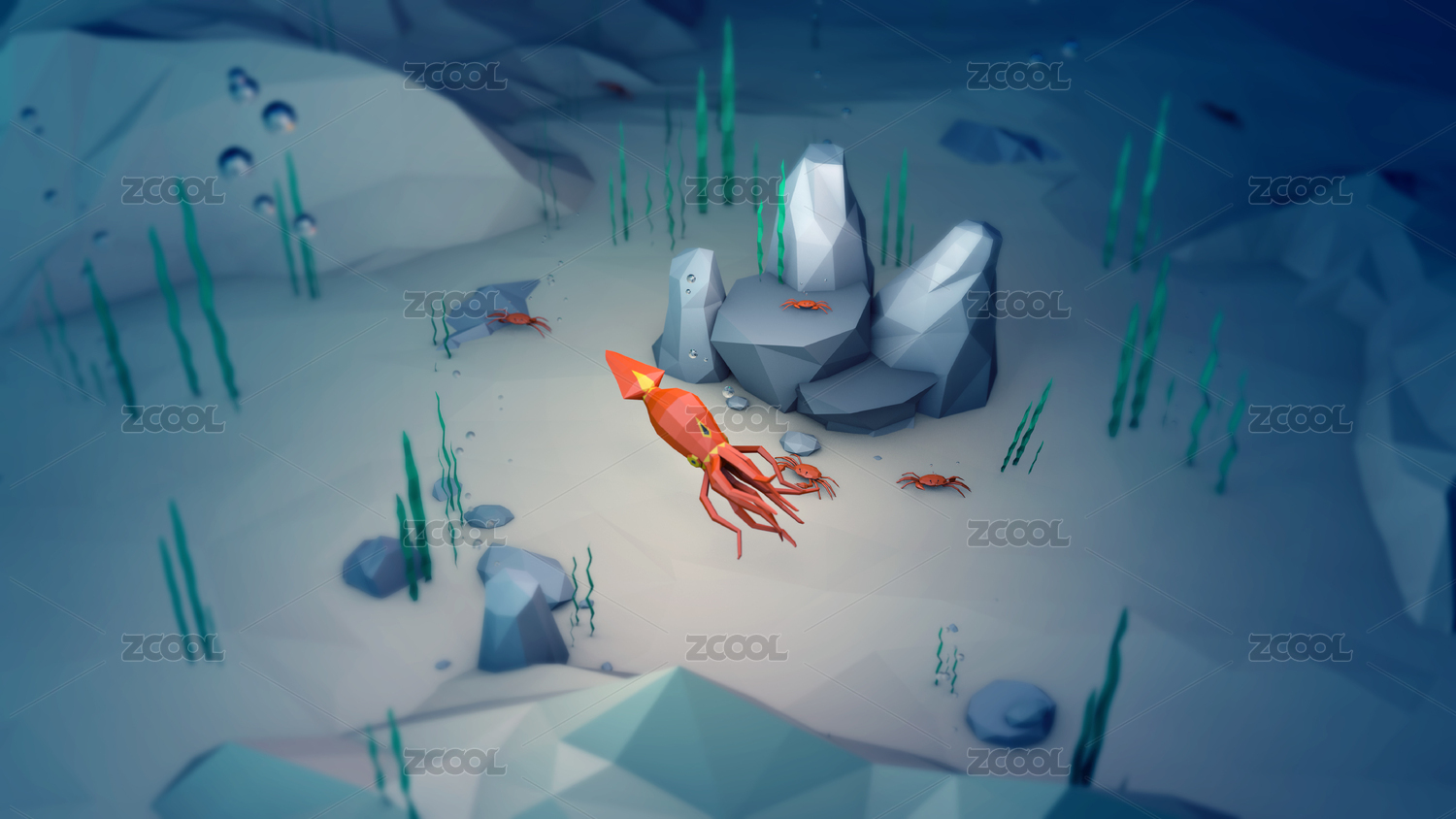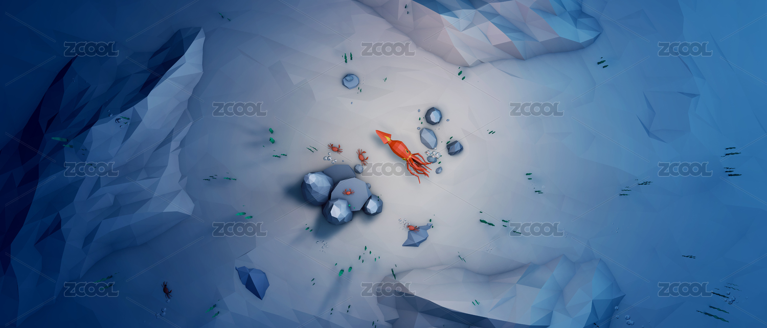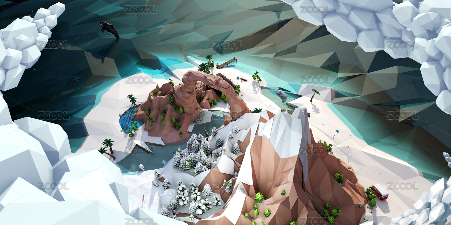 低多边形风格3D冰火度假小岛之夏日沙滩
