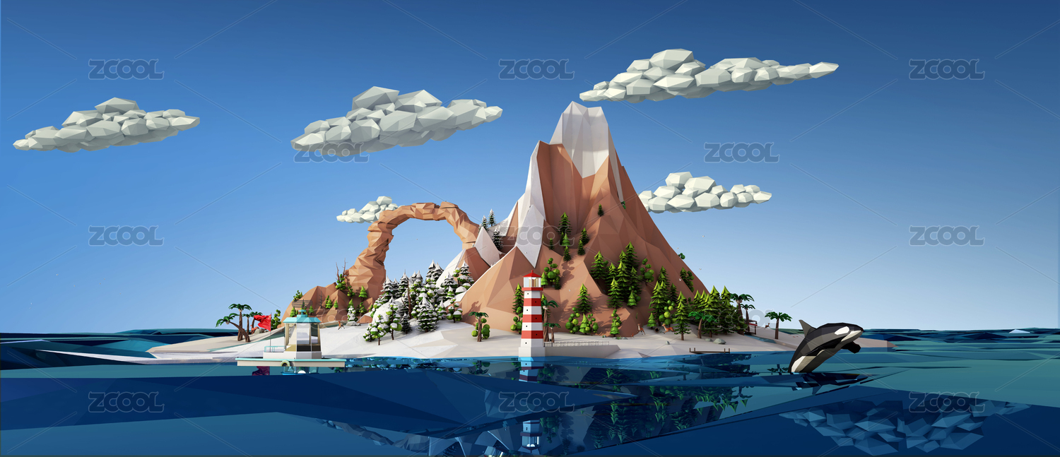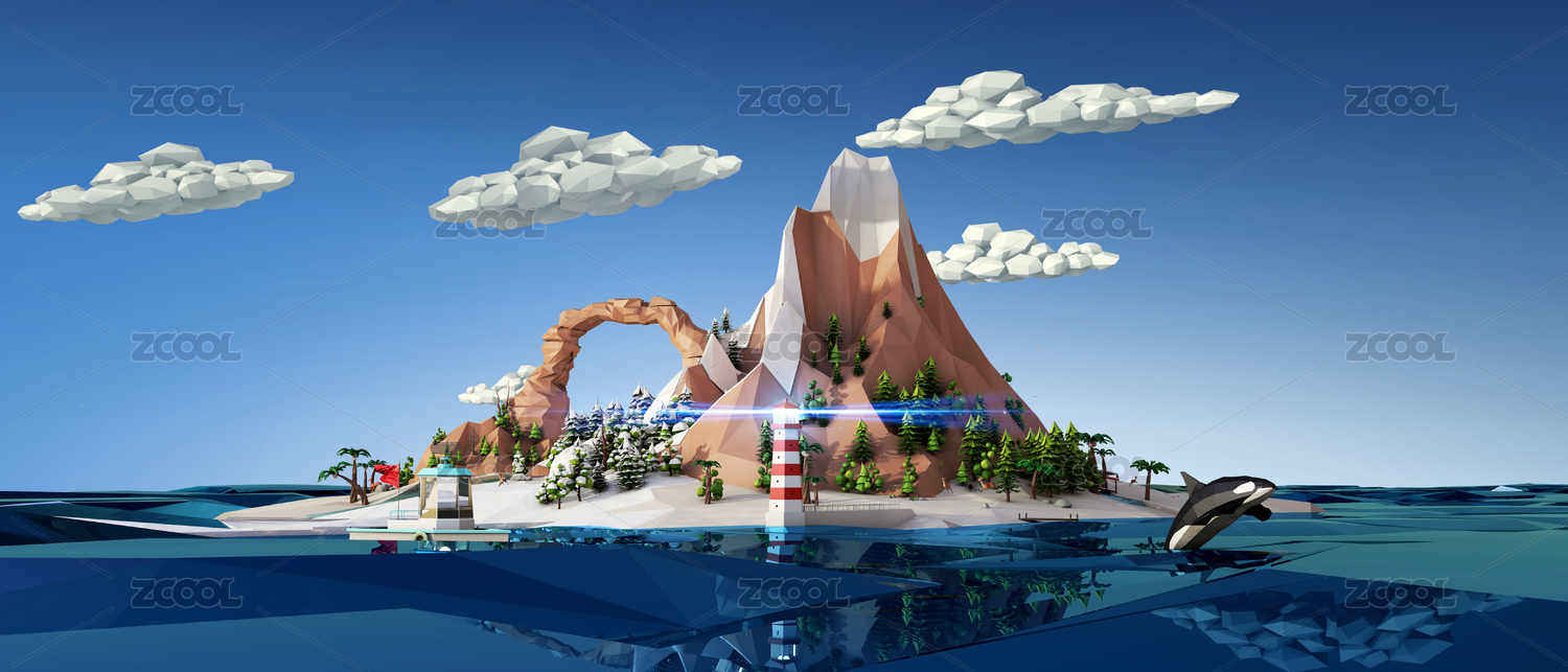 低多边形风格3D冰火度假小岛之仲夏之夜