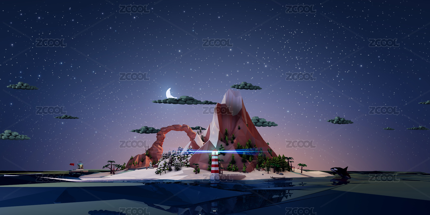 低多边形3D风格冰火度假小岛之仲夏夜之星空