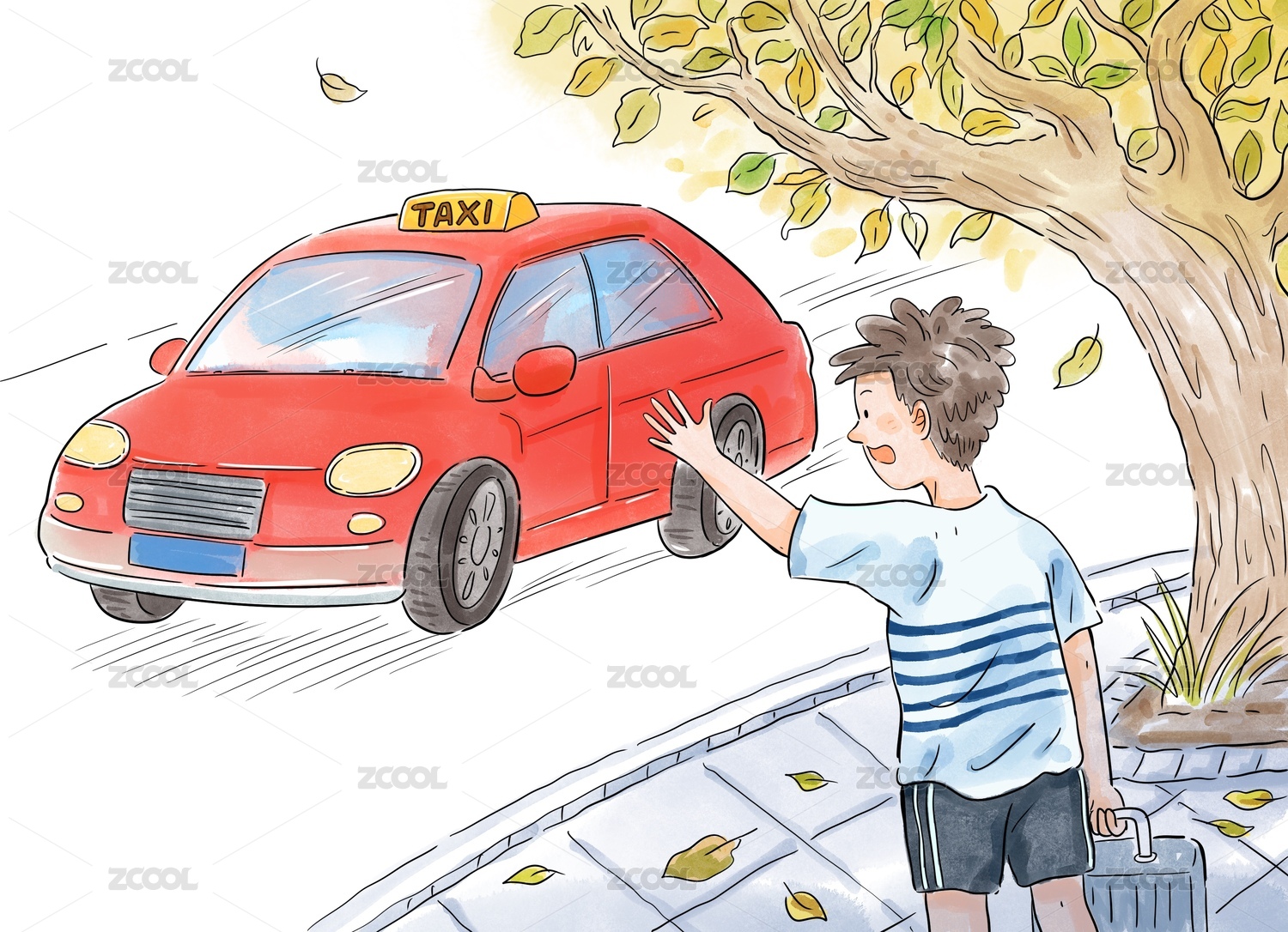 长焦镜头拍摄的正在火车站排队安静的出租车