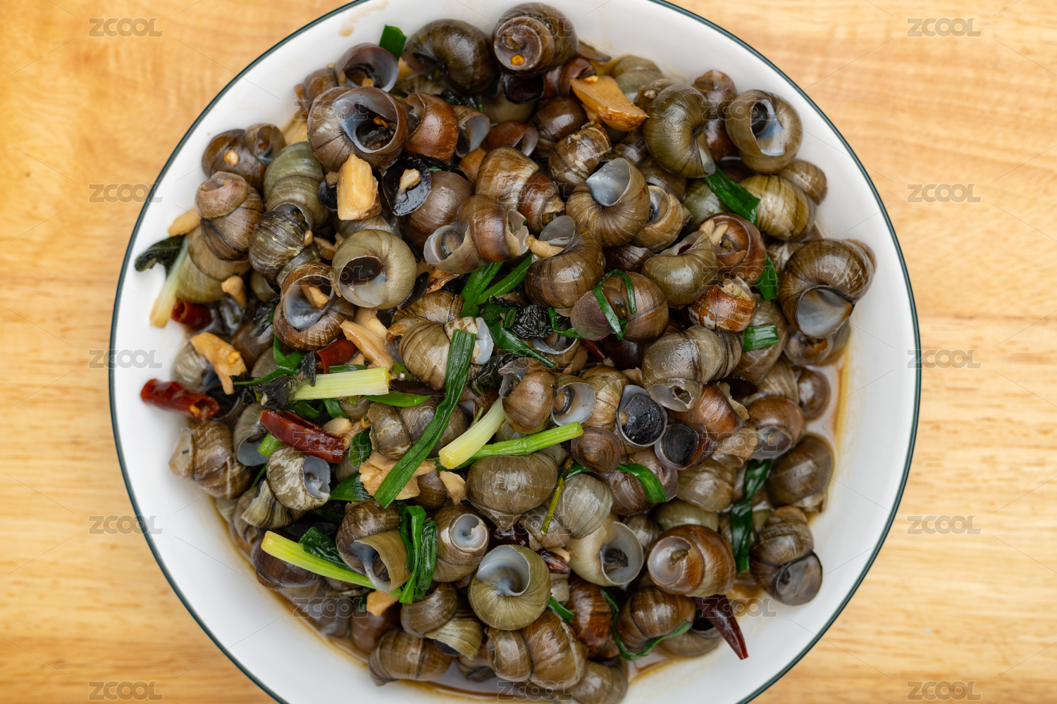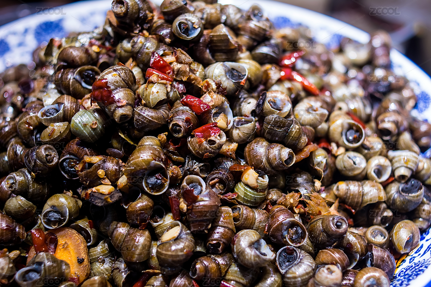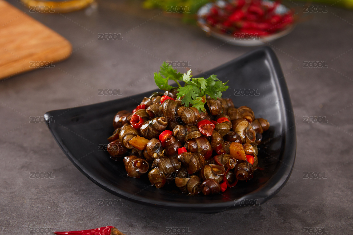广东粤菜红辣椒炒田螺中餐特写