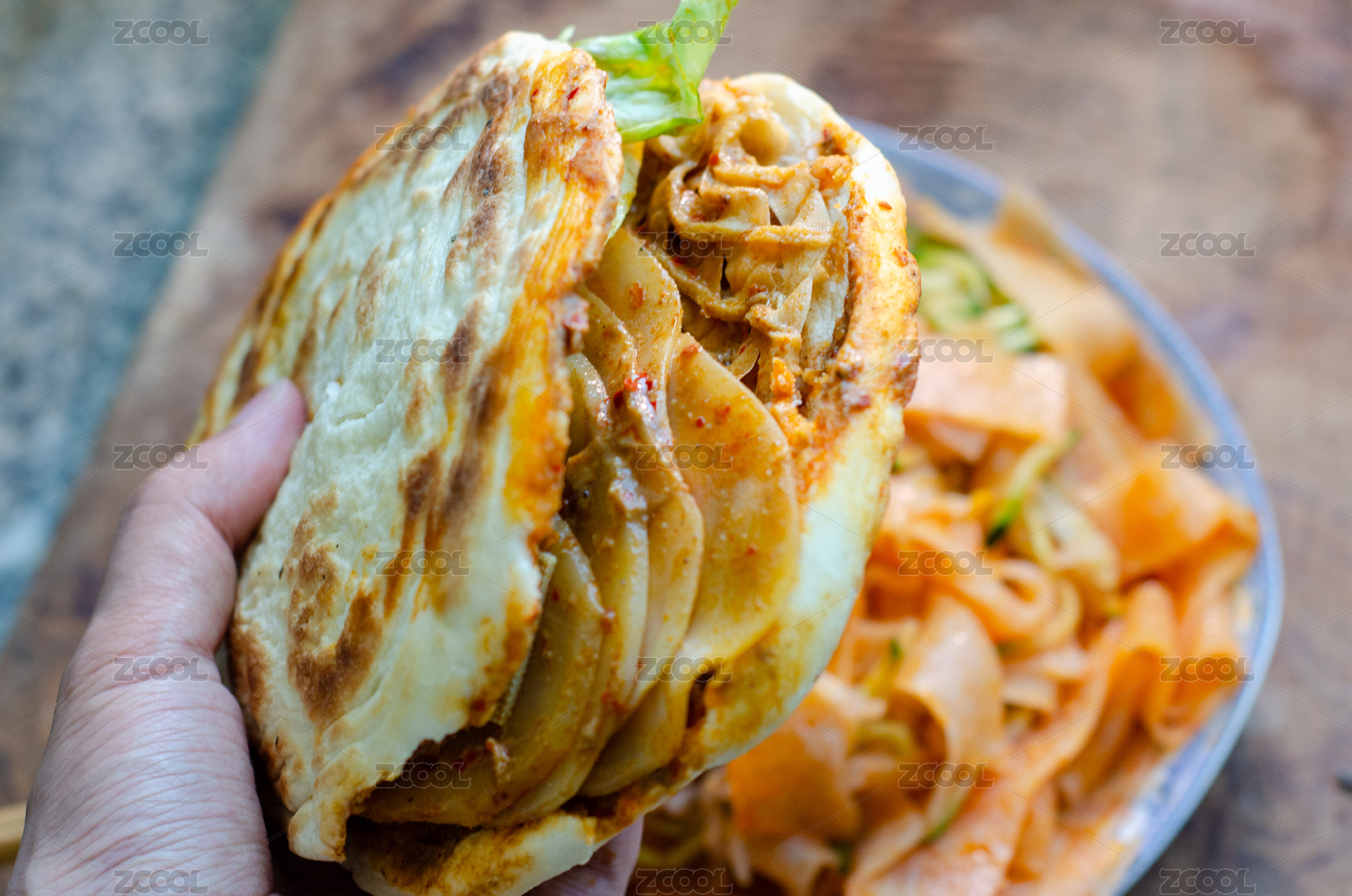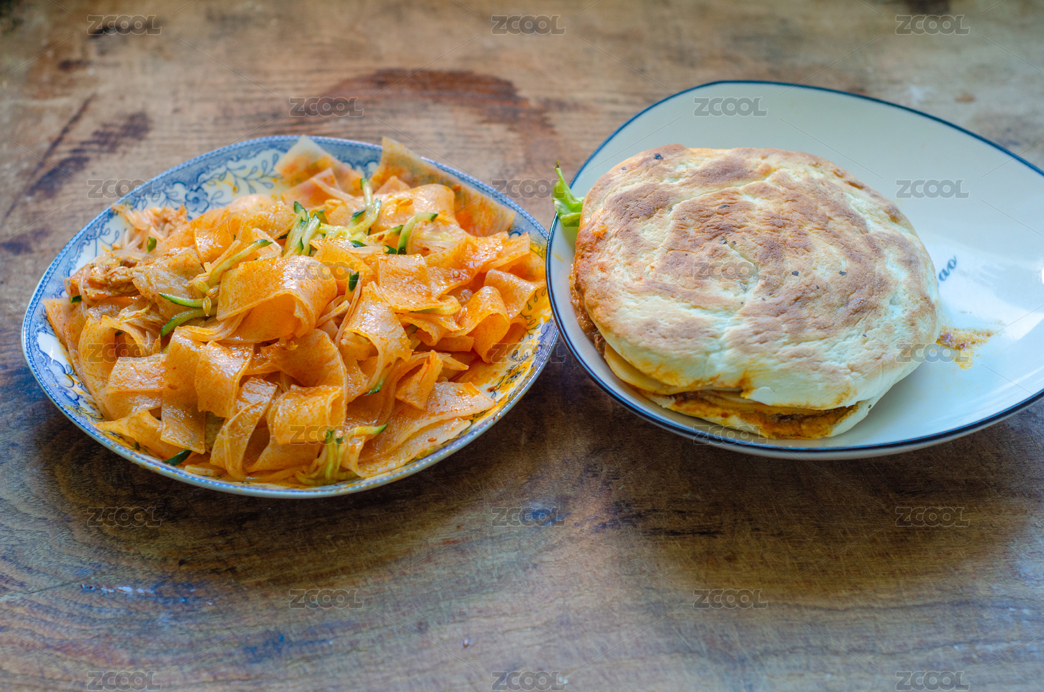 陕西西安小吃,红油凉皮和菜夹馍