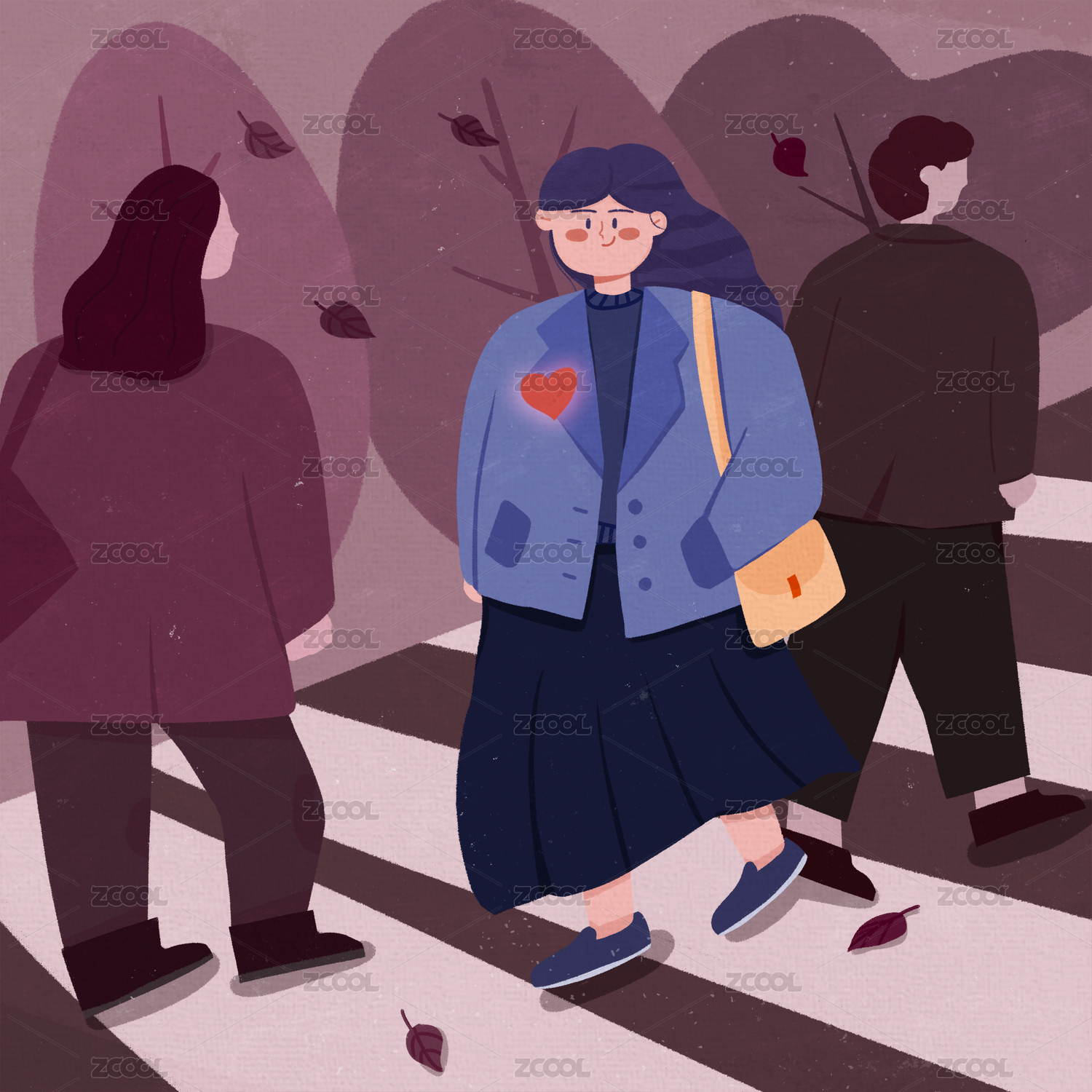 冬天走在路上打扮各式各样的行人