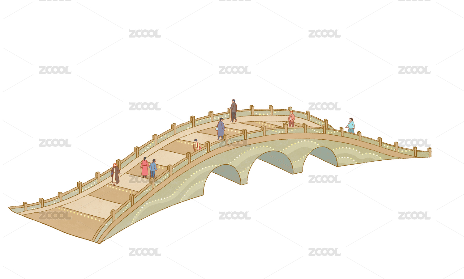 石堤上走着几个行人