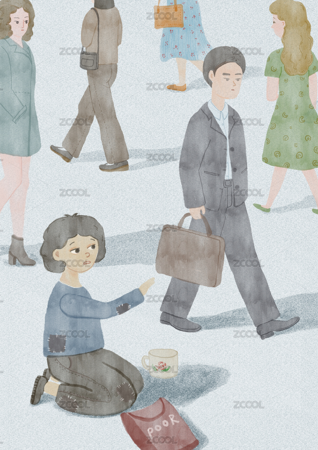 向行人乞讨的女人
