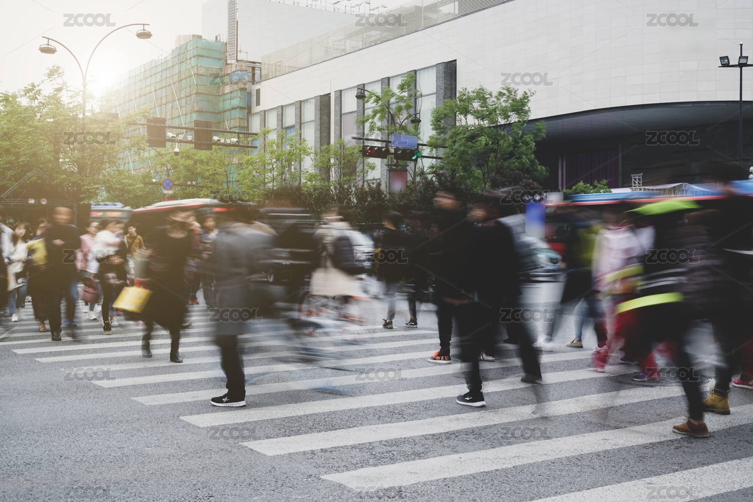城市道路斑马线和行人