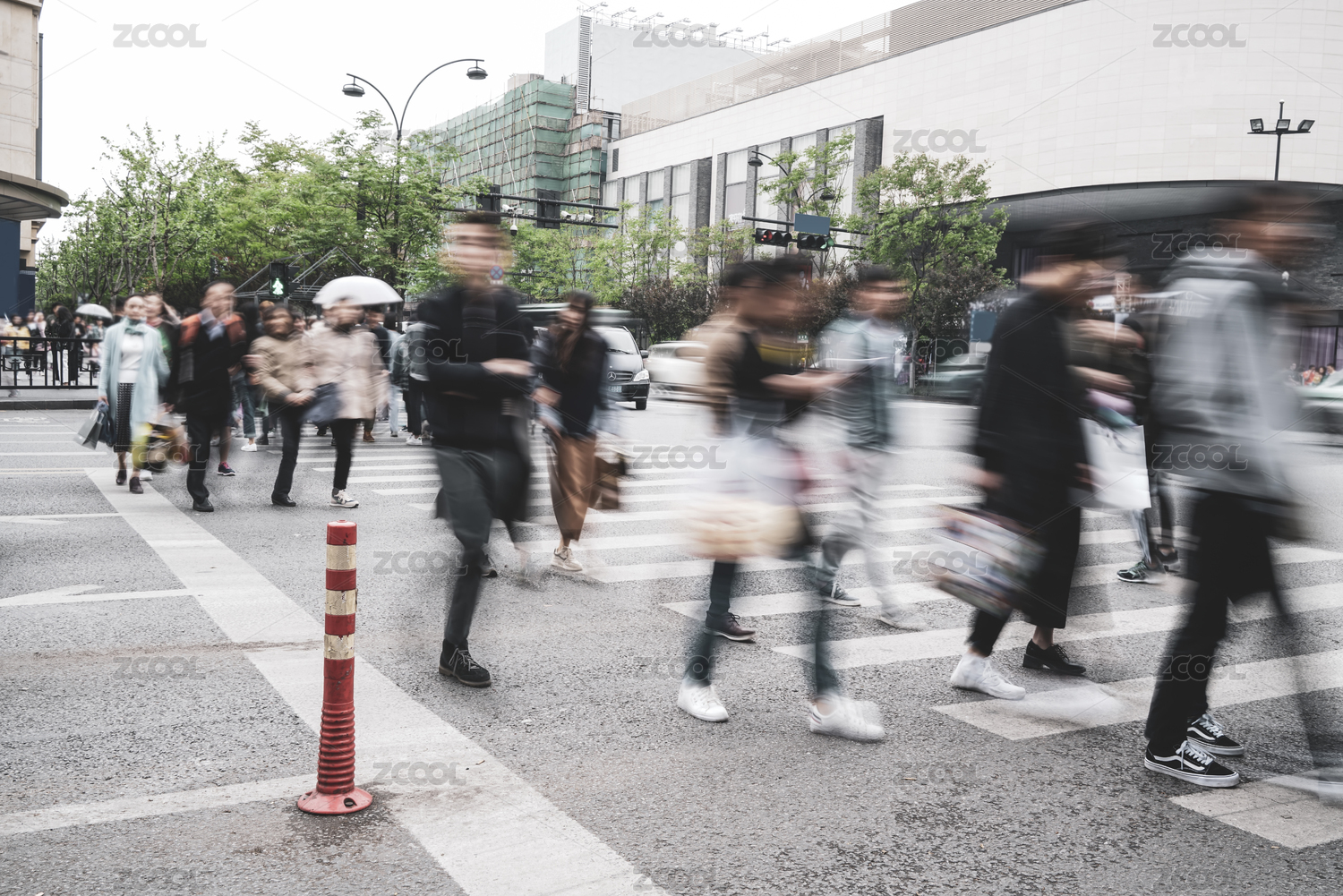 模糊的背景和城市斑马线行人
