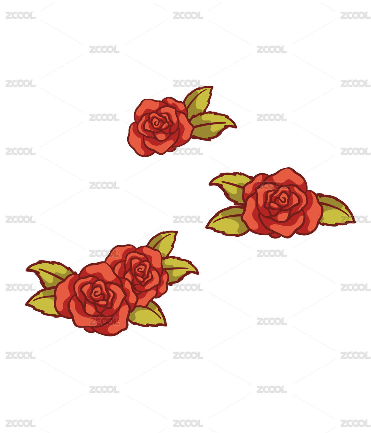 红玫瑰矢量插画图透明背景底花卉素材
