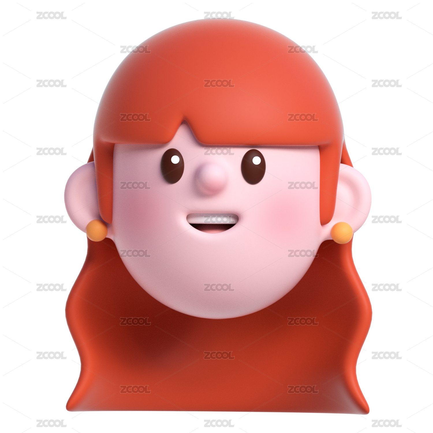 透明背景上长卷发戴耳钉的女孩子3D头部