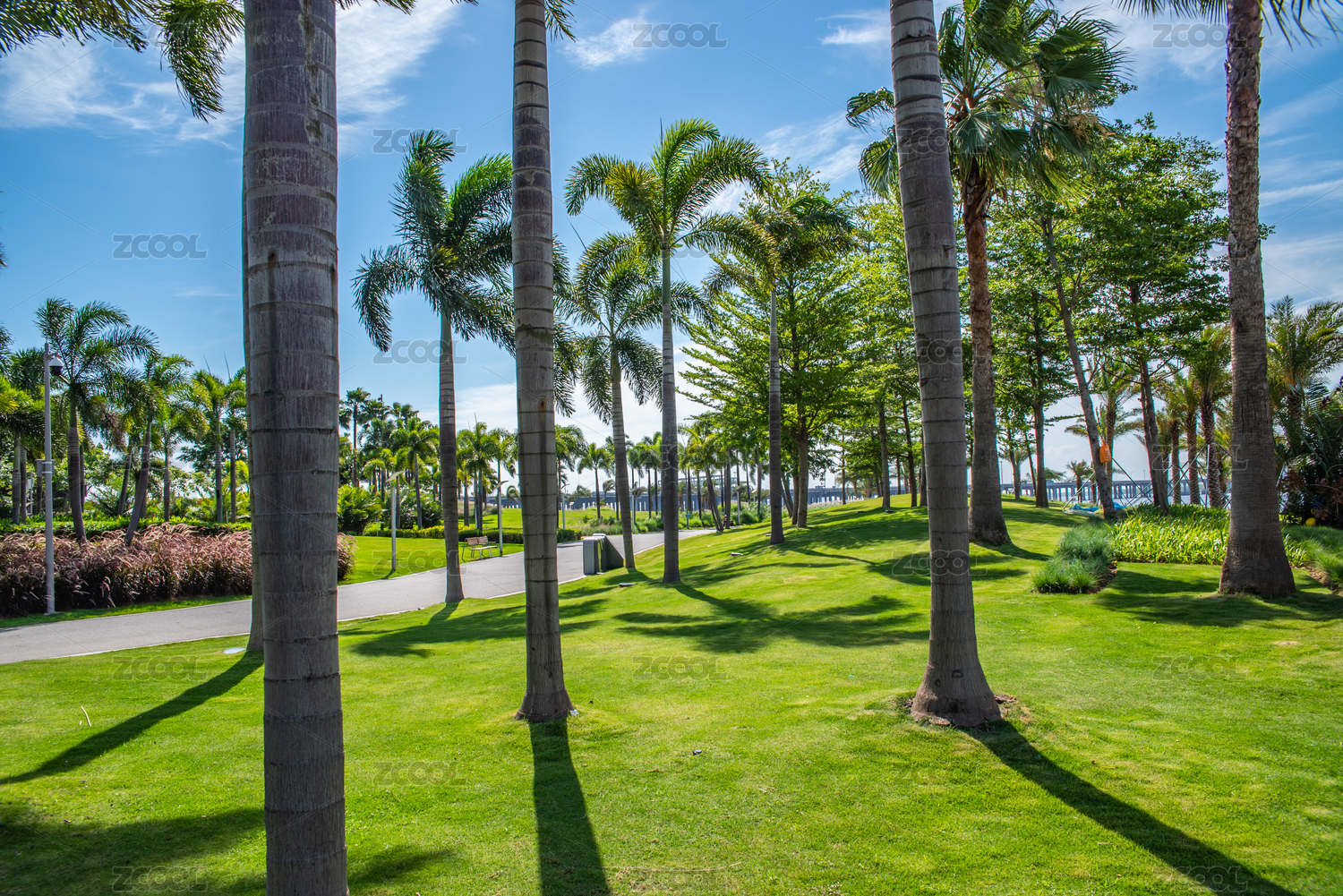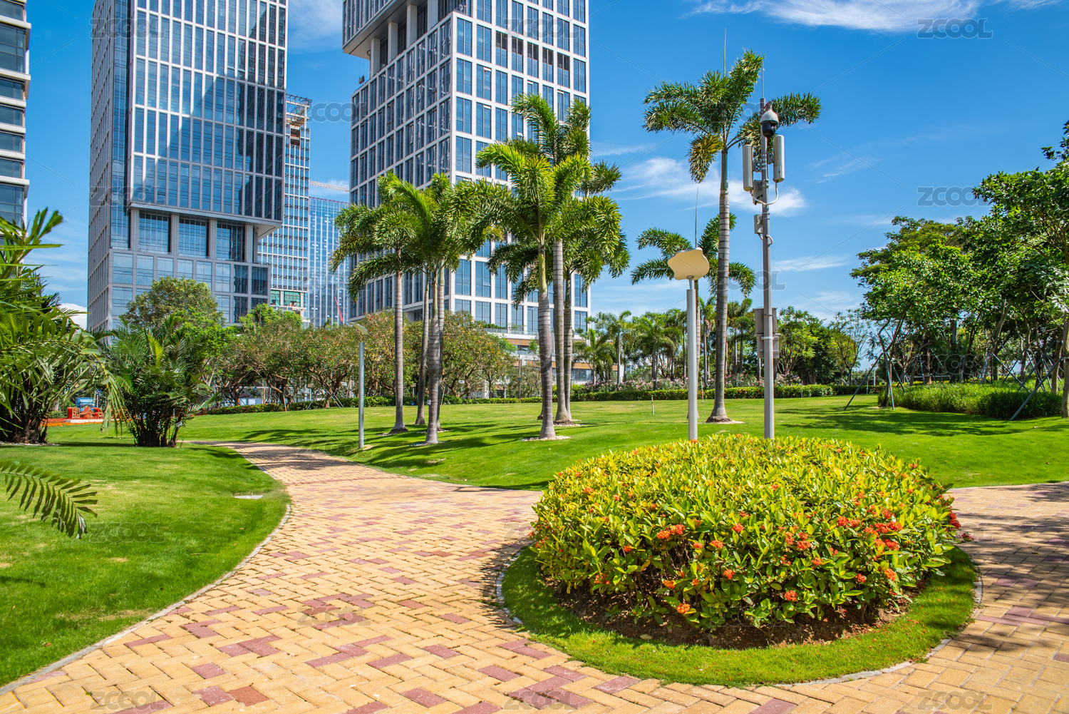 前海石公园草坪和城市建筑